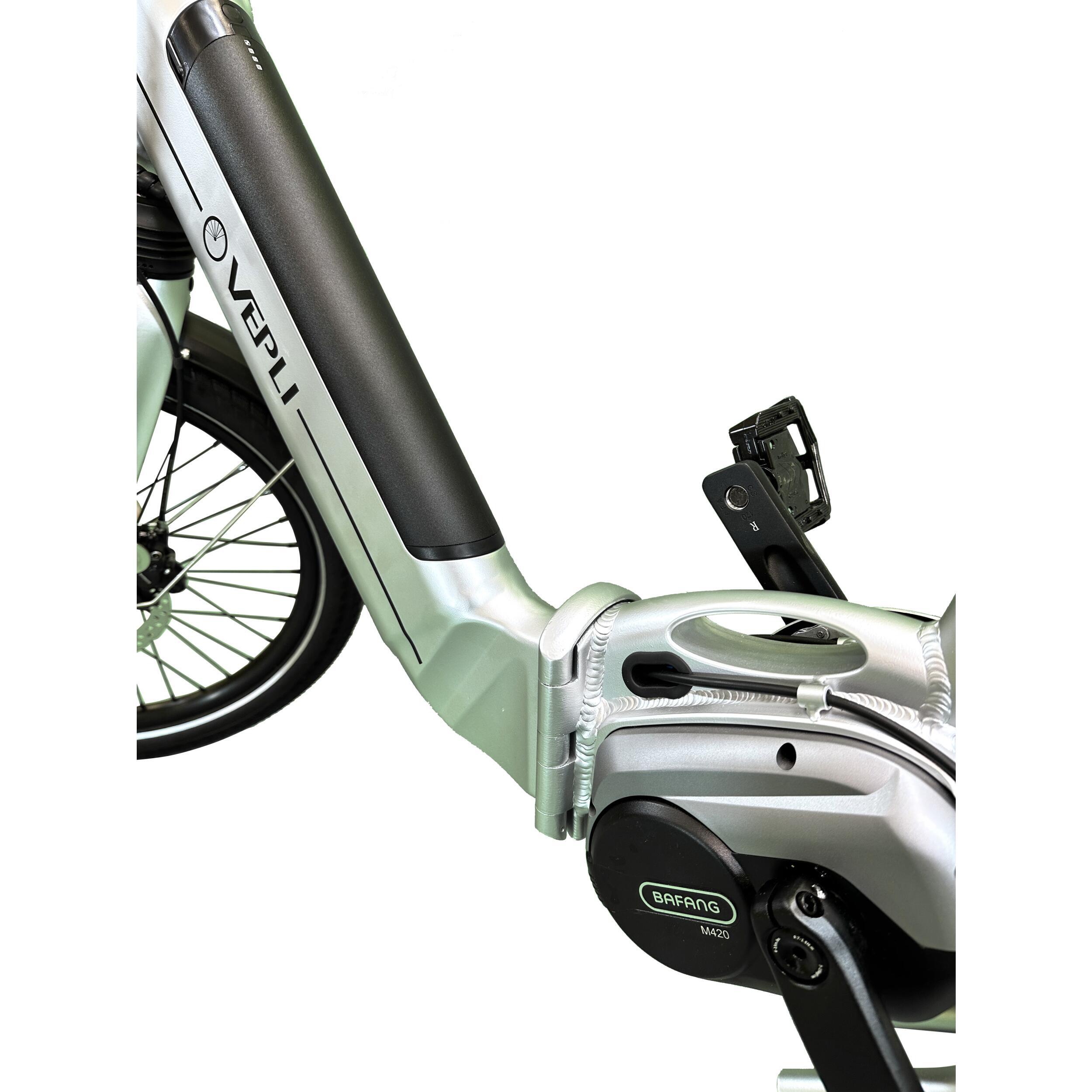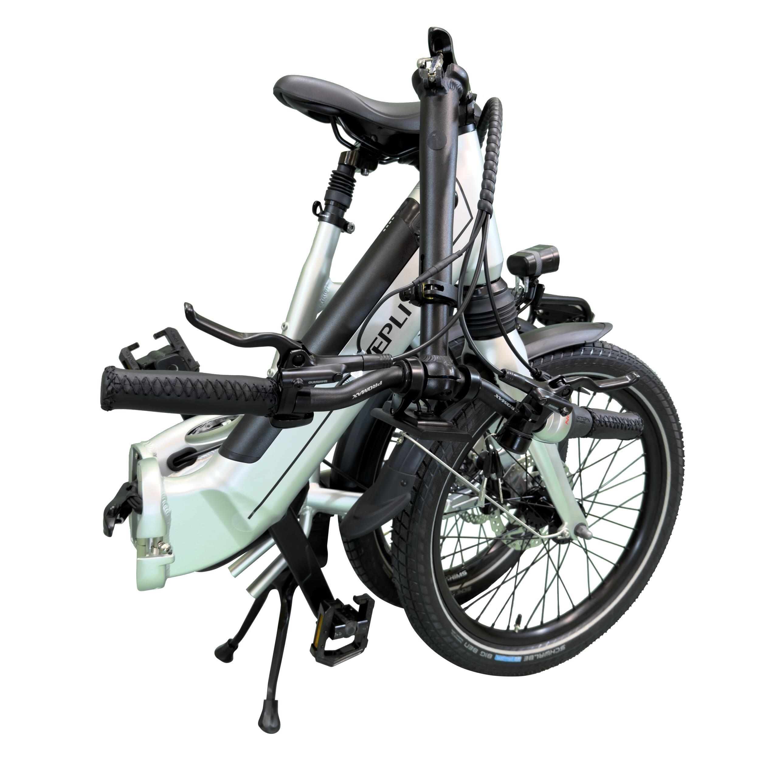 Grâce à son système de pliage en deux points, le vélo se plie et se déplie facilement selon les besoins. Il s’adapte aux déplacements combinant plusieurs modes de transport ainsi qu’aux usages loisirs.