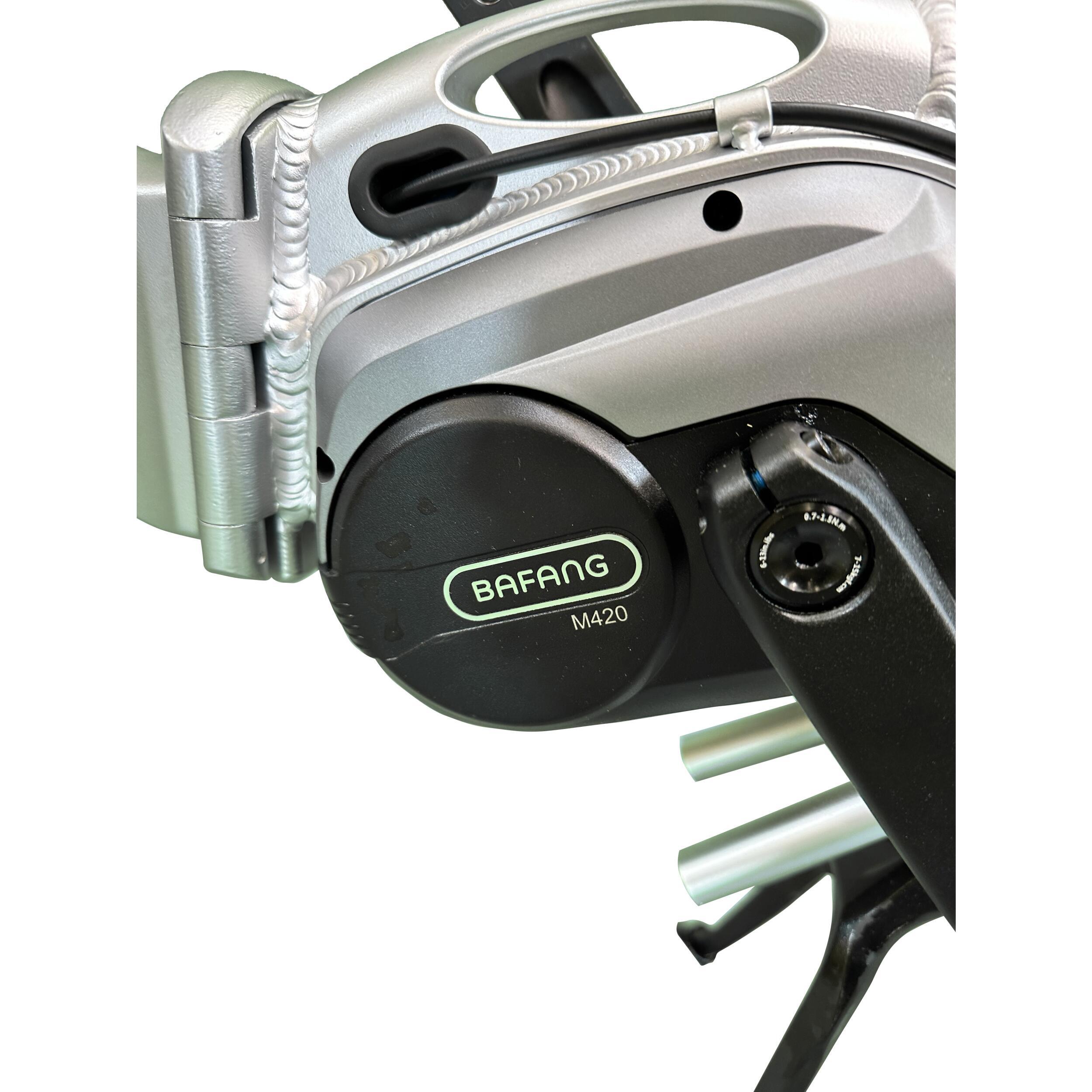 Le Muzy 20" est équipé d’un moteur central BAFANG M420 associé à un moyeu à vitesses intégré. Cette configuration permet une répartition des masses équilibrée et un centre de gravité bas, favorisant une conduite maniable et sécurisante.