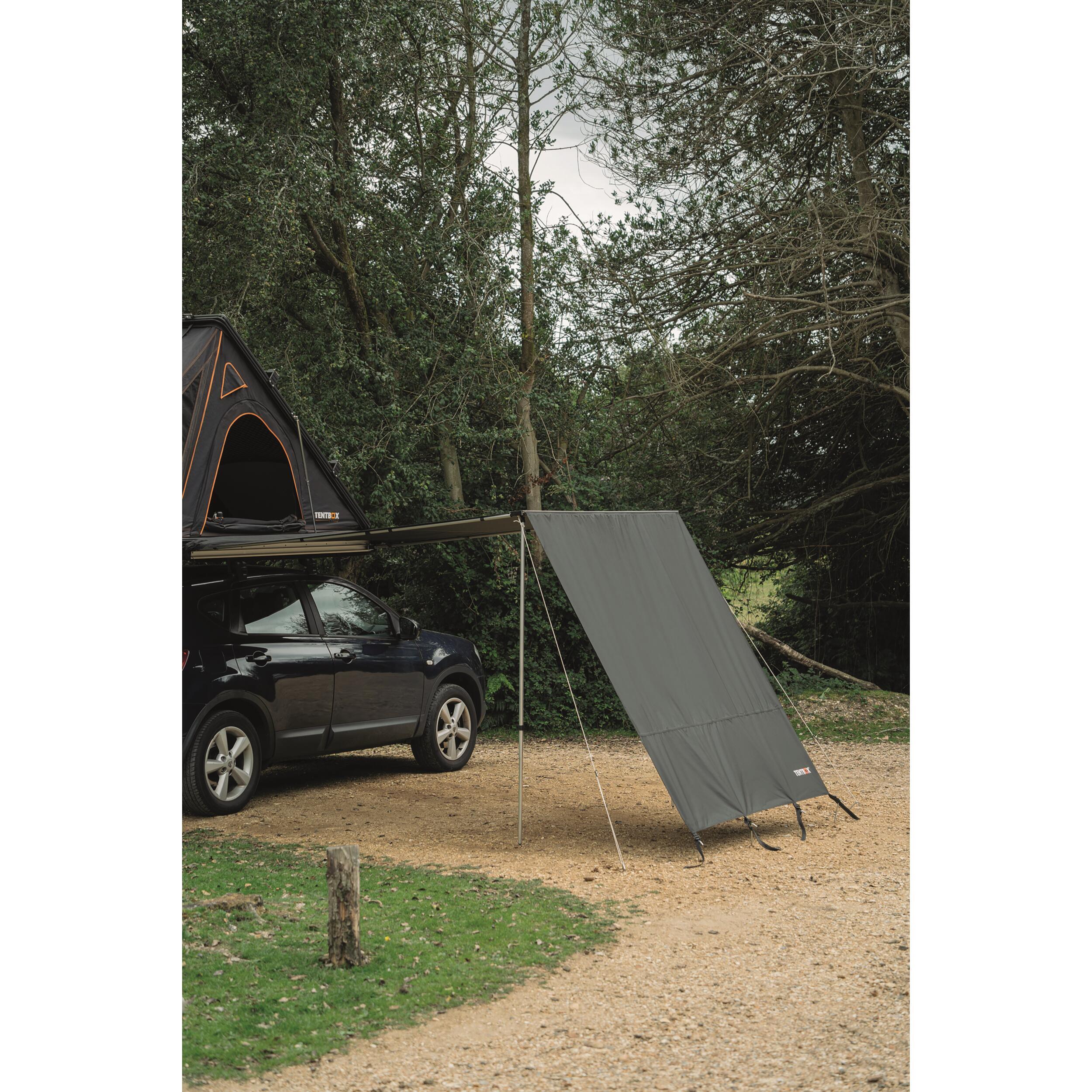 Pare-vent TENTBOX pour store latéral : ajoutez une façade protectrice contre pluie, vent et soleil à votre auvent en un clin d’œil.