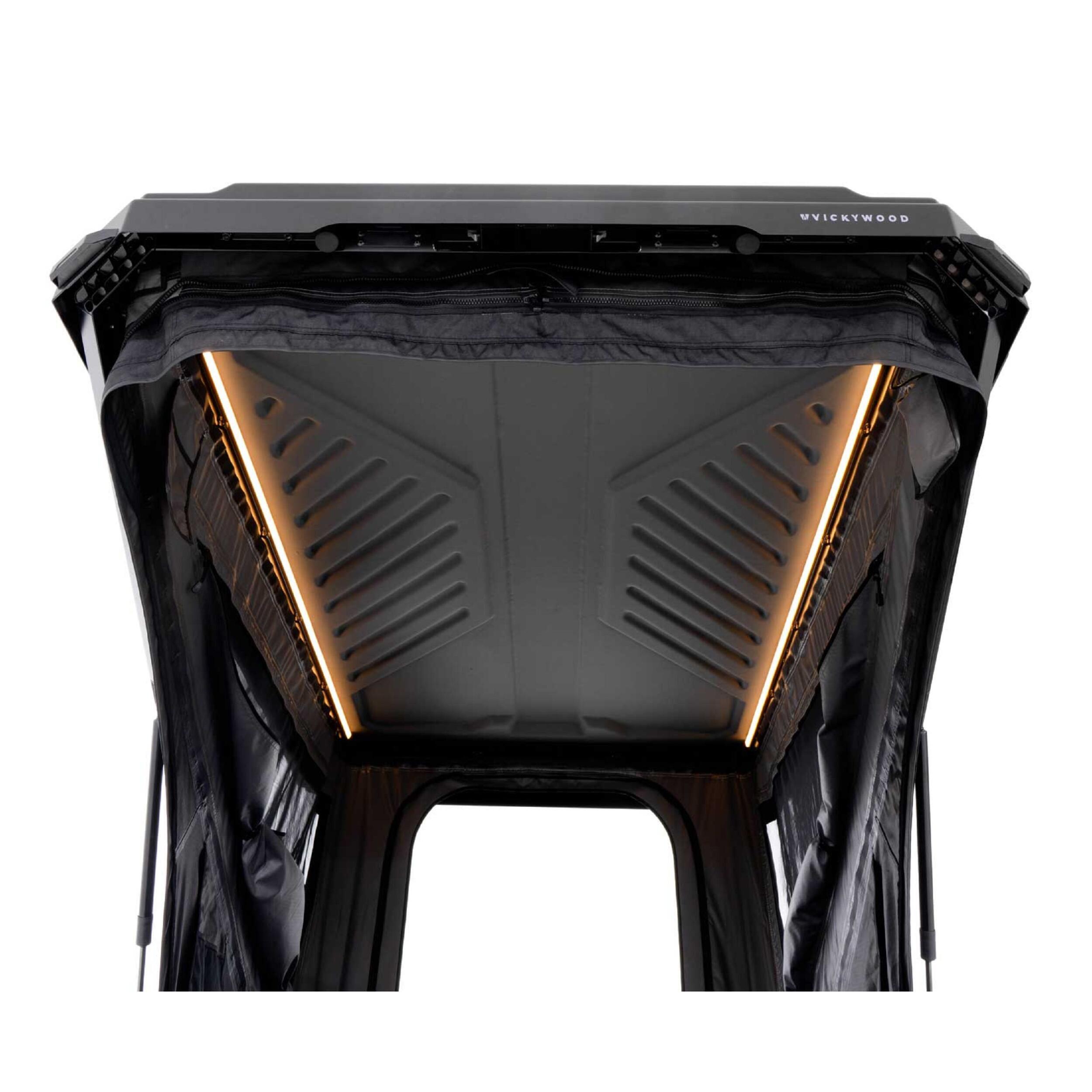 Avec la tente de toit Hazel, VICKYWOOD propose une solution idéale pour les voyageurs en quête de simplicité, de confort et de rapidité. Grâce à son ingénieux système de double ouverture assistée par vérins à gaz, cette tente de toit se déploie en quelques secondes, selon vos envies : en mode pop-up complet pour profiter d’un grand volume intérieur ou en configuration triangulaire pour plus d’aérodynamisme sur la route.