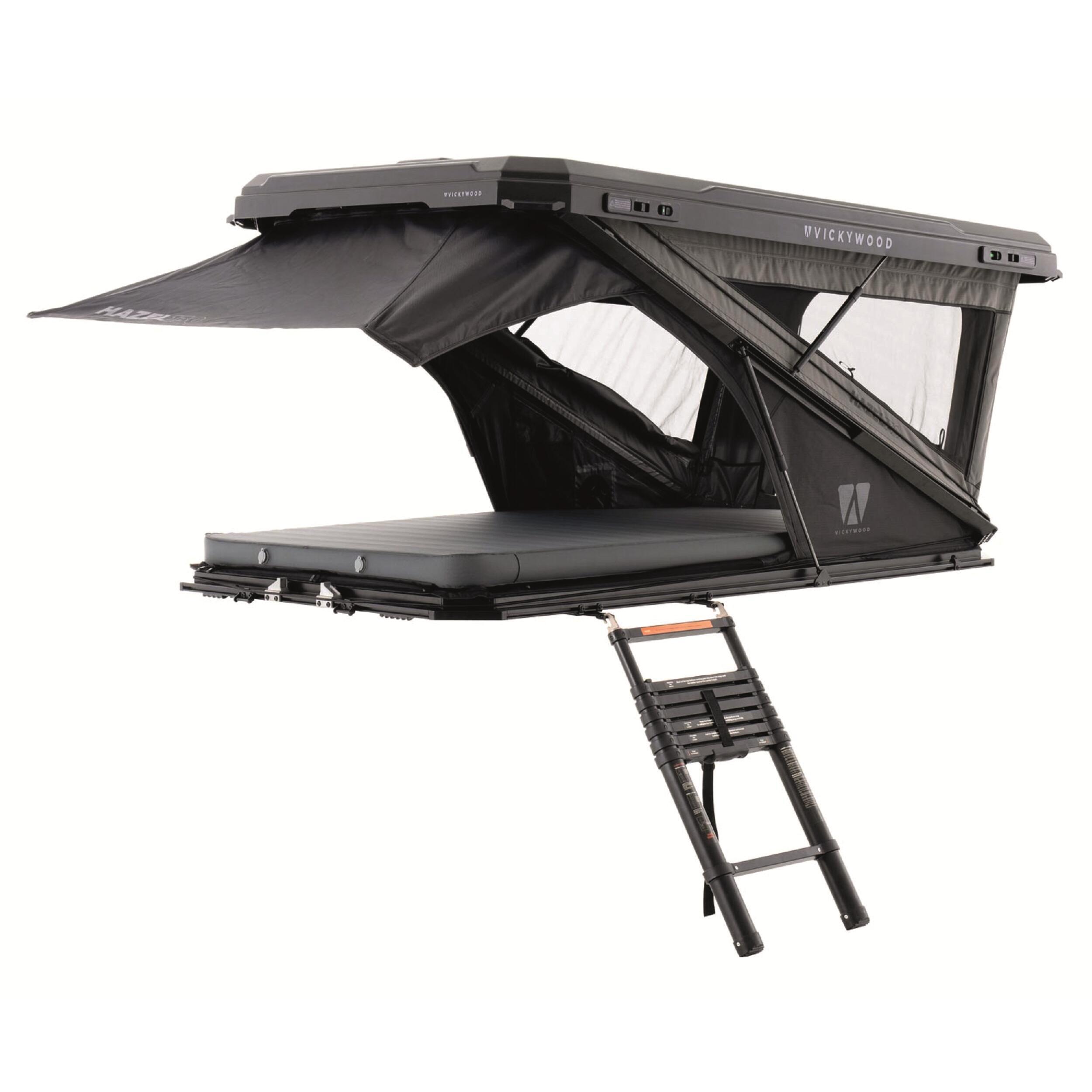 Tente de toit Hazel VICKYWOOD : déploiement ultra-rapide, vue panoramique à 270°, design moderne et confort maximal pour vos aventures en van ou 4x4.