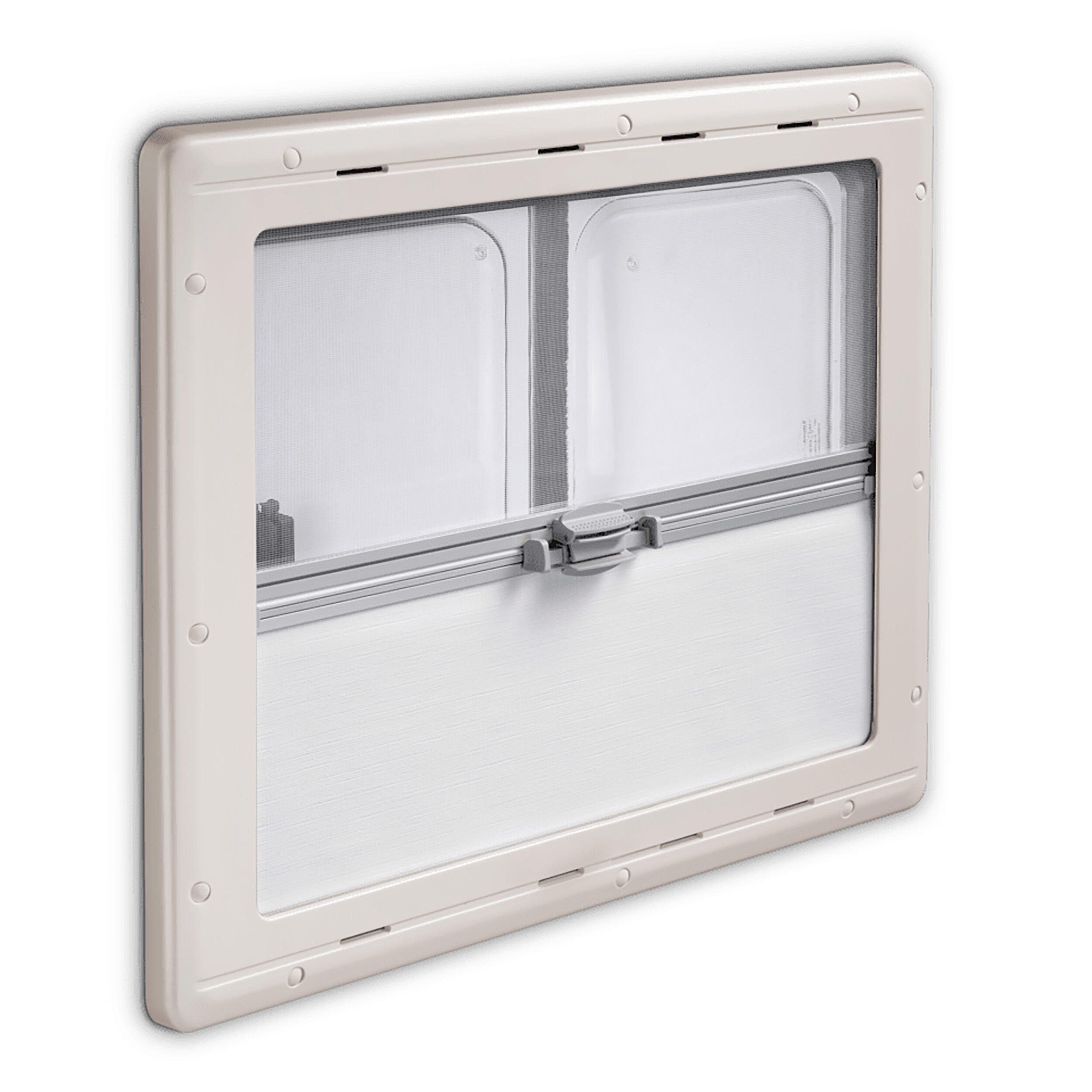 La fixation s'effectue par pincement en vissant le cadre intérieur sur le cadre extérieur. Un store (toile plastifiée : intérieur beige clair et extérieur argent) et une moustiquaire sont intégrés dans le cadre intérieur et sont réglables dans diverses positions pour plus de confort. Les baies S4 sont réversibles, elles peuvent se poser indifféremment du côté gauche ou droit. Les modèles à projection sont équipés de compas à ouverture réglable.