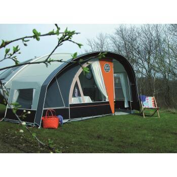 Auvent pour caravane spéciale Tab. Façade détachable. Moustiquaire obturable sur le côté droit.