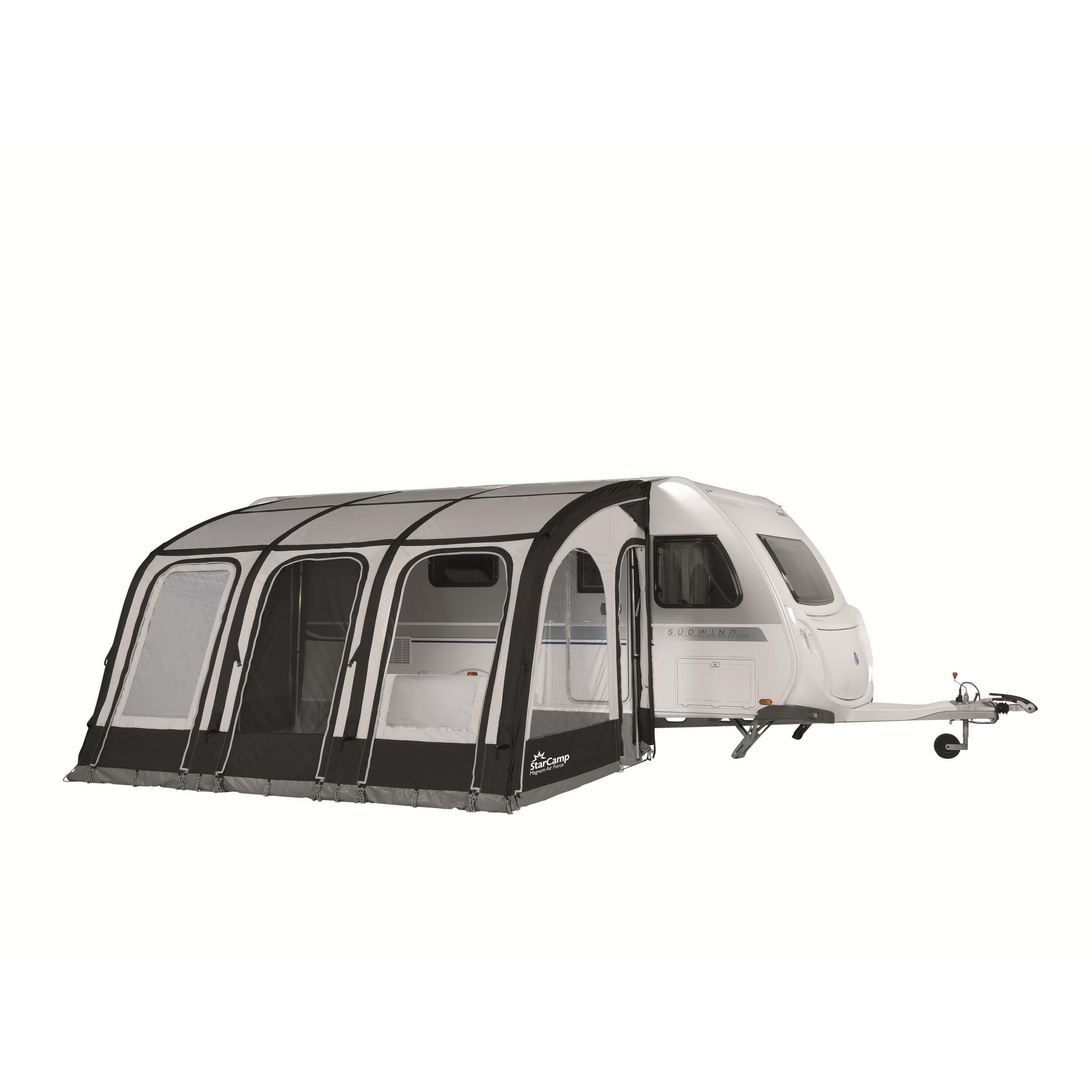 L'auvent gonflable Magnum Air Force de Dorema, idéal pour caravanes (235-255 cm), offre une installation aisée avec pompe incluse et options modulables.