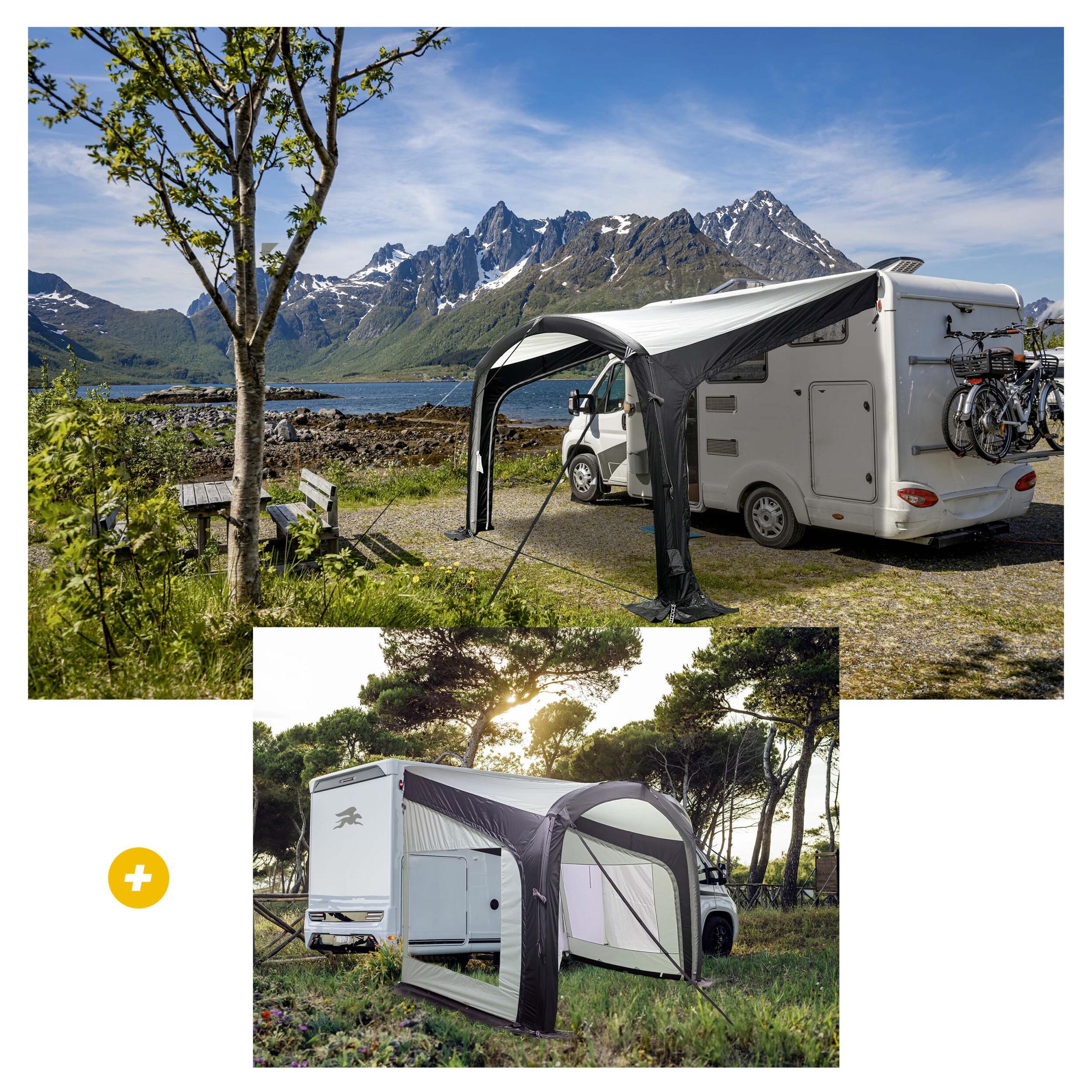 L'Ombréa Air de la marque Baya Sun révolutionne le concept des solettes pour caravanes. Avec une hauteur de montage entre 235 et 250 cm, elle s'adapte parfaitement à la majorité des véhicules de loisirs. Son atout principal réside dans son système de gonflage en un seul point, permettant une installation et un démontage ultra-rapides. En quelques minutes, vous créez un espace de vie supplémentaire devant votre véhicule, idéal pour se détendre à l'ombre tout en profitant du plein air. Fini les installations complexes et longues, place à la simplicité et à l'efficacité.