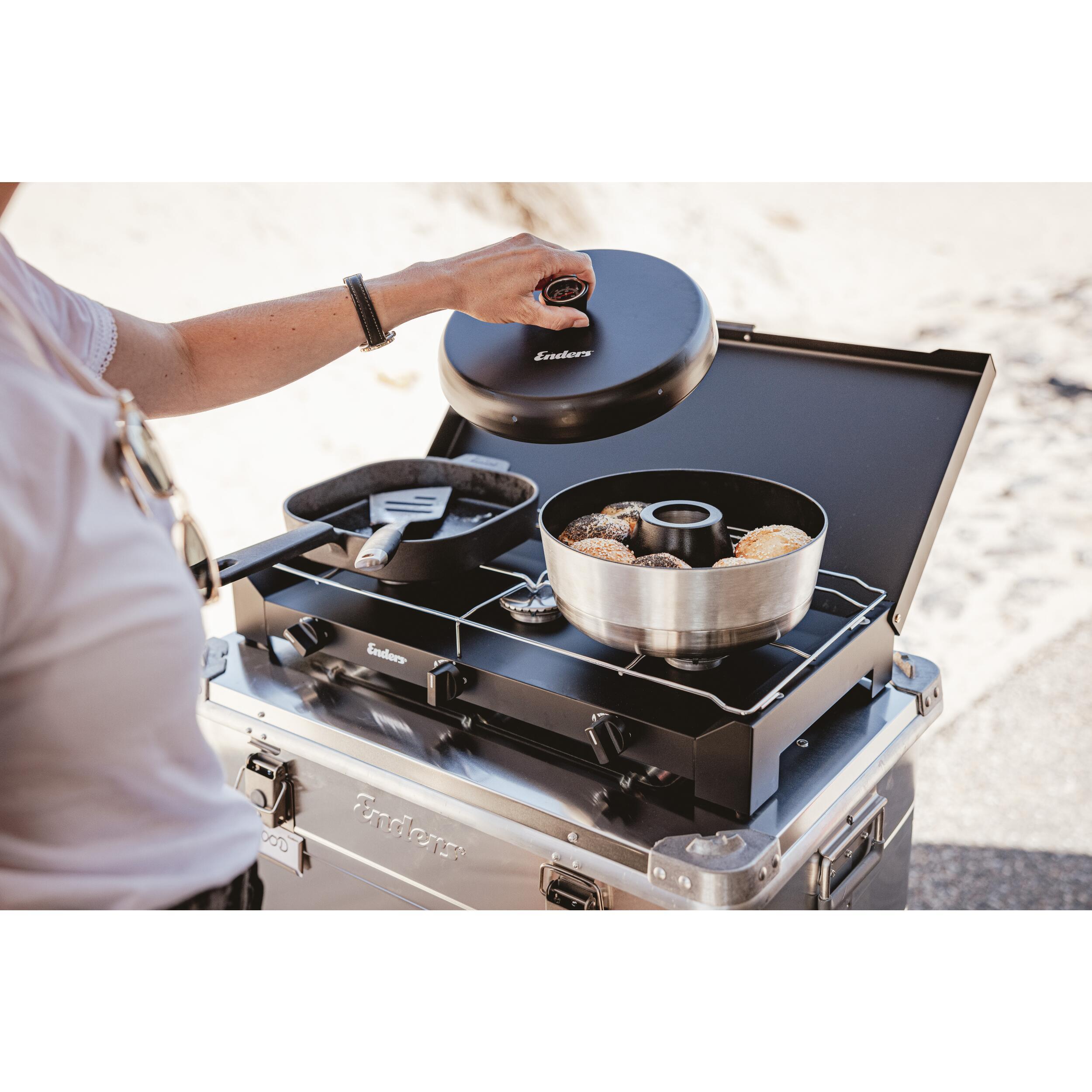 Grâce à sa compatibilité avec les réchauds, barbecues et plaques de cuisson (hors induction), ce four mobile vous offre une flexibilité maximale. Vous pouvez l’installer sur votre feu de camp ou votre cuisinière portable pour préparer des plats variés avec la même qualité de cuisson qu’à la maison. Son thermomètre intégré et sa grille de cuisson incluse vous garantissent un contrôle précis de la température et une cuisson toujours homogène. Peu importe votre recette, obtenez un résultat parfait à chaque utilisation !
