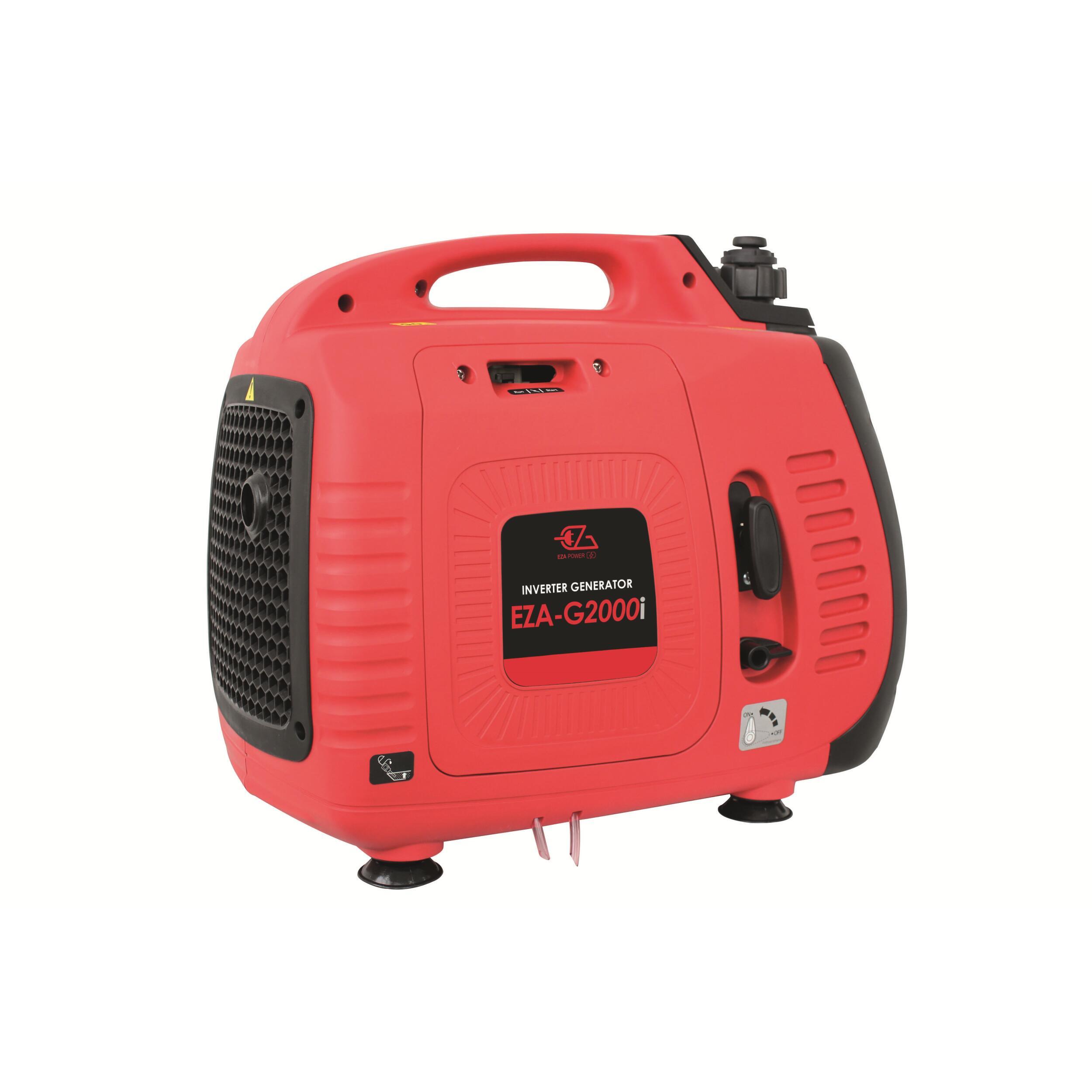 Groupe électrogène portable Eza avec technologie Inverter 50Hz, courant 220V sinusoïdal, mode économique, démarrage par pompe d’amorçage et ports USB intégrés.