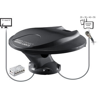 Antenne Hybride WING-LAN11 : Innovation et Confort sur la RouteConnectivité Internet OptimaleLa WING-LAN11 intègre une antenne Internet à haut rendement pour les signaux 2G, 3G, 4G et 5G, vous assurant une connexion stable et rapide, partout où vous allez. Conçue pour les nomades numériques, cette antenne est votre meilleure alliée pour rester connecté avec efficacité et sans interruption.Réception TV et Radio AvancéeProfitez d'une réception télévisuelle de qualité avec l'antenne TV omnidirectionnelle intégrée, compatible avec les signaux numériques terrestres DVBT/T2. Ne manquez jamais vos émissions préférées, même en plein voyage. De plus, l'antenne est équipée pour capter la radio DAB+, vous offrant ainsi un large choix de stations radio pour égayer vos trajets.Création de Point d'Accès Wi-FiReliée au routeur TELECO, la WING-LAN11 transforme votre camping-car, fourgon aménagé ou van en un véritable hotspot Wi-Fi WLAN. Ce point d'accès vous permet de surfer sur internet, regarder des vidéos en streaming et rester connecté avec vos proches sans souci de couverture réseau.