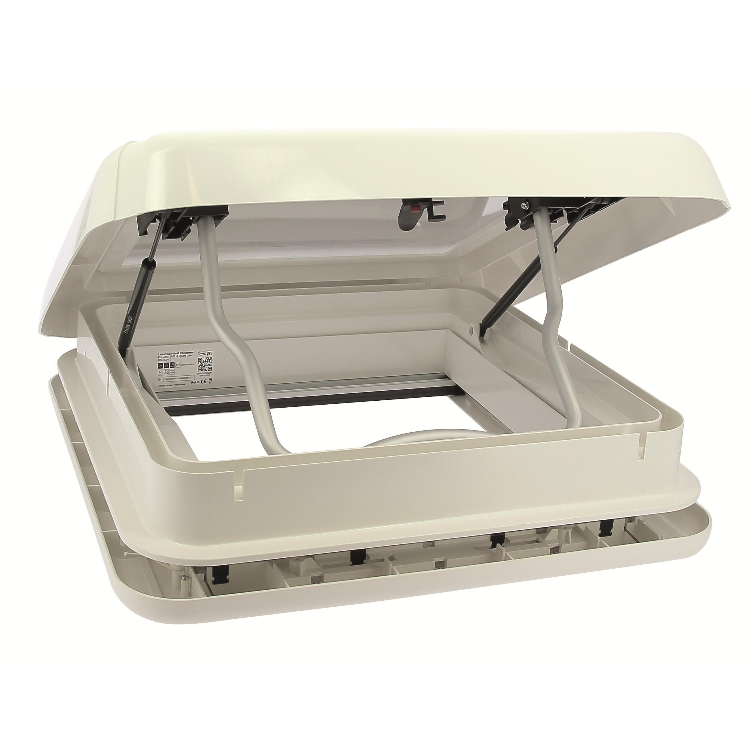 Vous rêvez d’un intérieur lumineux, aéré et parfaitement isolé dans votre van ou camping-car ? Le lanterneau Climatherm Pro 40x40 de la marque Conversion Van est conçu pour répondre à toutes vos attentes. Sa ventilation permanente garantit un renouvellement d’air constant, essentiel pour éviter la condensation et préserver une atmosphère agréable à l’intérieur, même en cas de forte chaleur ou d’humidité. Ce système de ventilation discrète et continue est un vrai plus pour les utilisateurs exigeants.