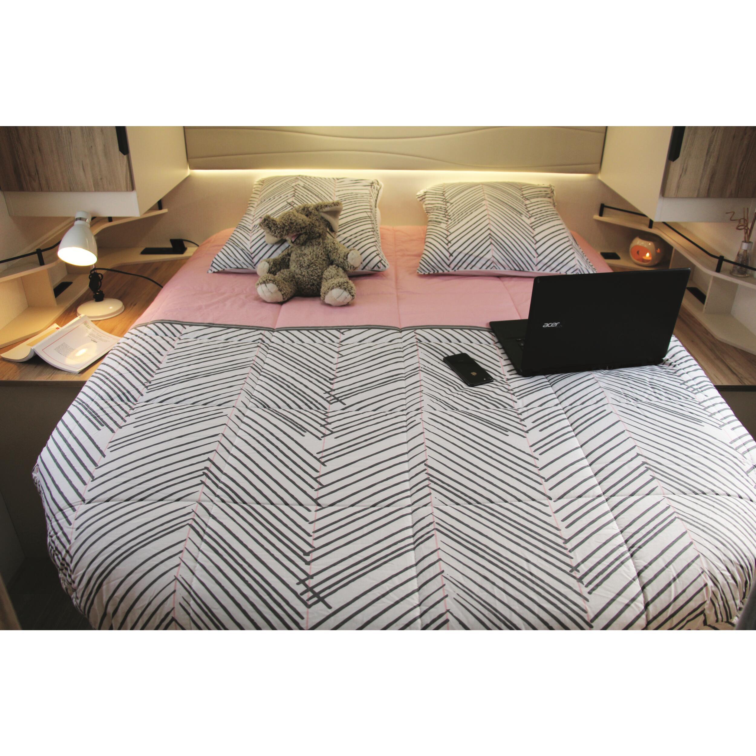 Ce prêt à dormir est un prêt à dormir 2 en 1 : à la fois couette été et couette hiver. Avec ces 2 couettes reliées entre elles par un système de zip, vous en profiterez toute l’année. Vous pouvez ainsi les séparer en fonction de la saison. L’hiver, vous gardez les 2 couettes liées ensemble. L’été, vous détachez l’une des couettes ou les deux s’il fait très chaud.