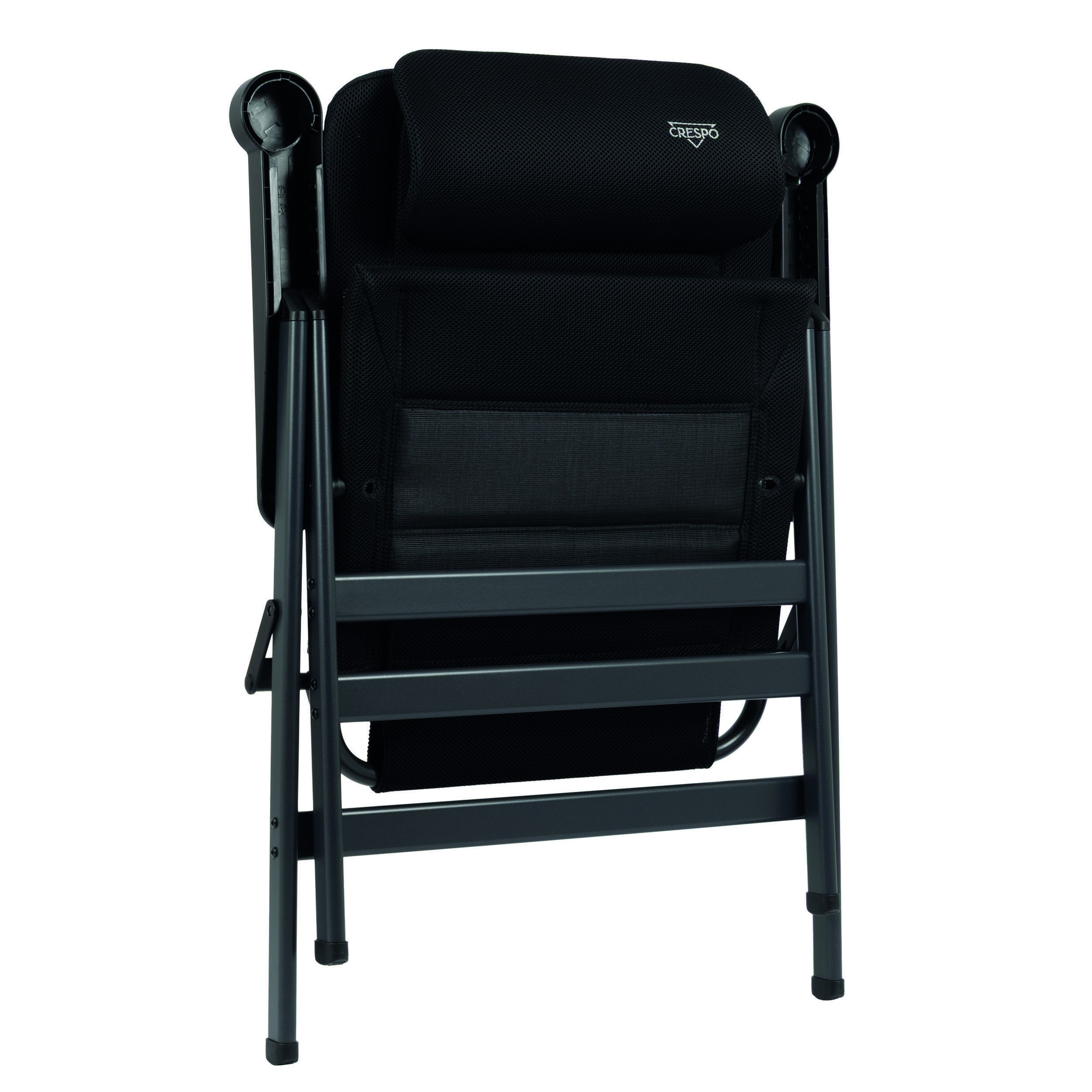 Fauteuil de camping pliant Crespo, doté d’un dossier haut et d’un appui-tête réglable pour un confort exceptionnel en extérieur.