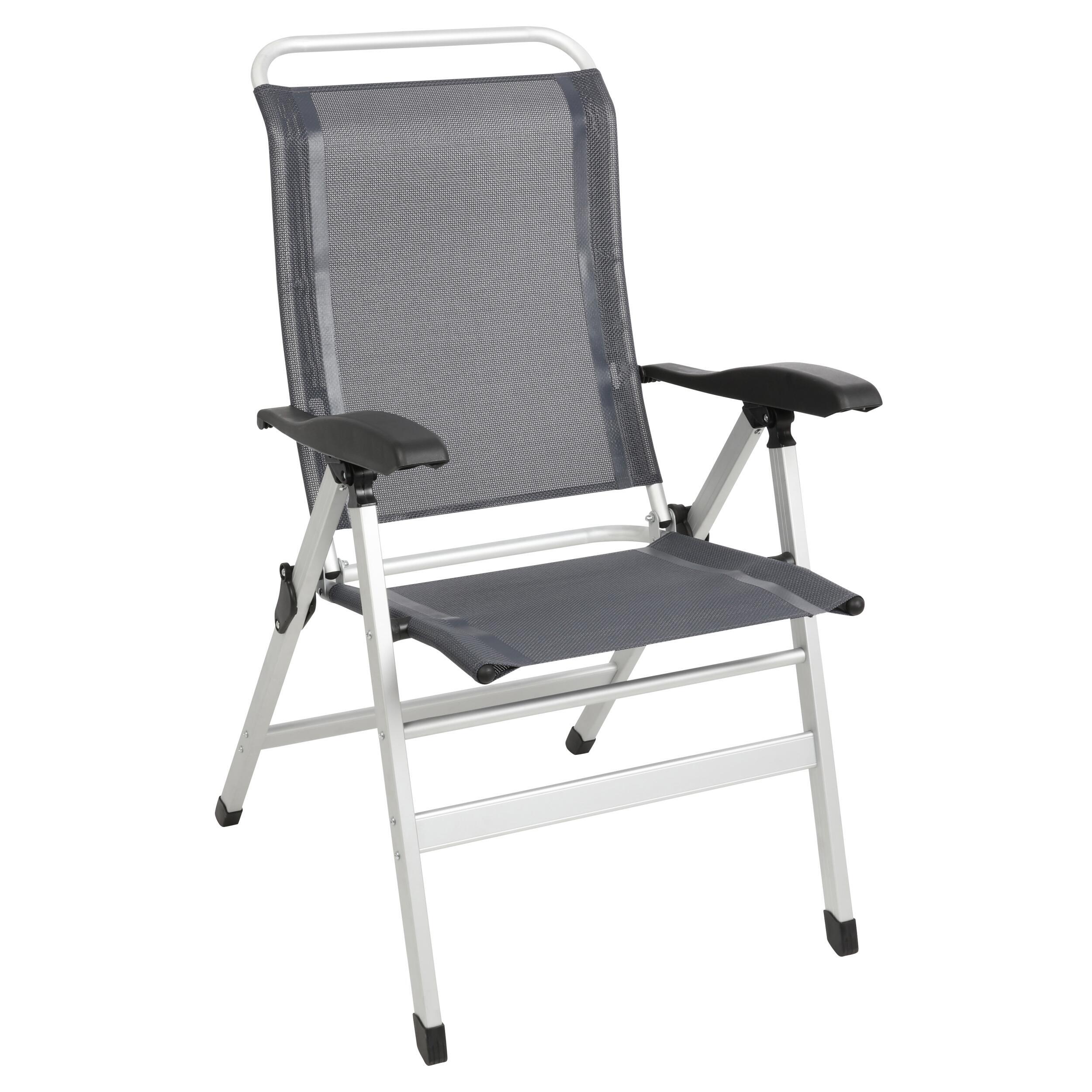 Fauteuil en toile tressée et armature en aluminium. Grâce à son dossier à 7 réglages d'inclinaison, vous trouverez toujours la position qui vous convient.