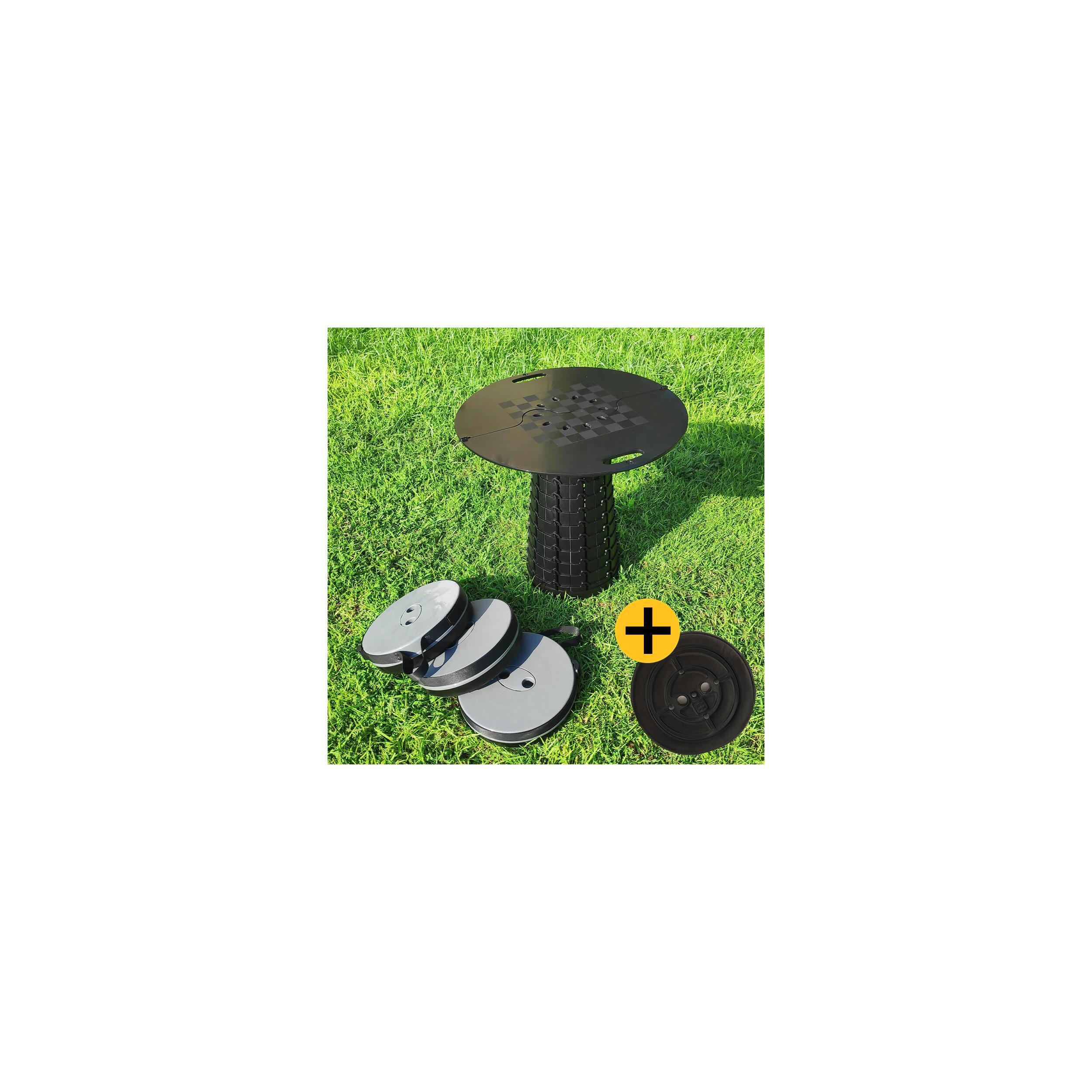 Ce pack associe 4 tabourets au plateau et au coussin rembourré pour un set de pique-nique tout confort !
