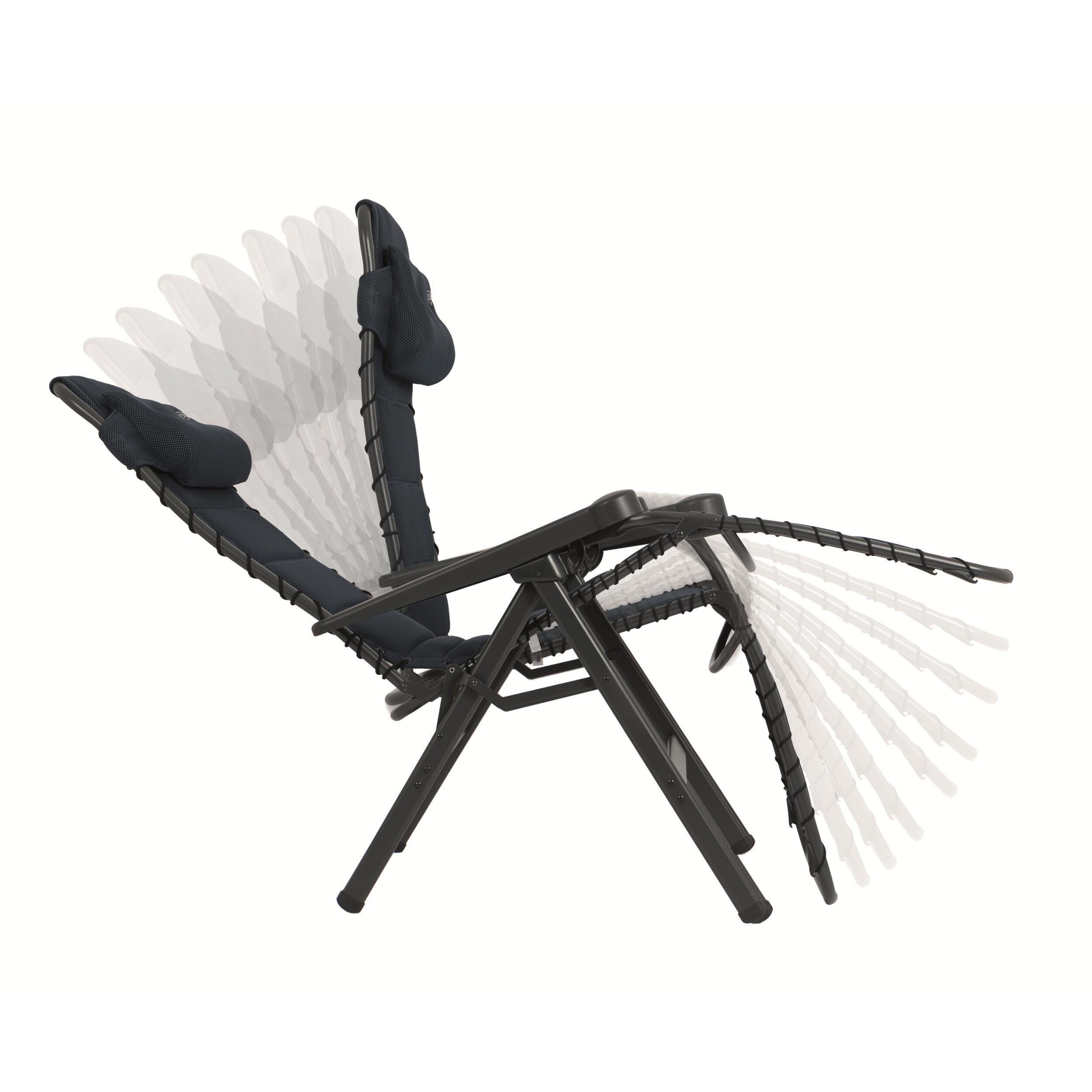 Conçu pour une relaxation totale, ce fauteuil dispose d’un repose-tête rembourré et ajustable pour un maintien parfait. Son dossier réglable en continu avec système de frein permet de bloquer la position souhaitée. Le tissu Mesh 3D Comfort Foam assure une ventilation agréable et un confort optimal, même par temps chaud. Les accoudoirs ergonomiques et la fixation élastique procurent une sensation de suspension très agréable.