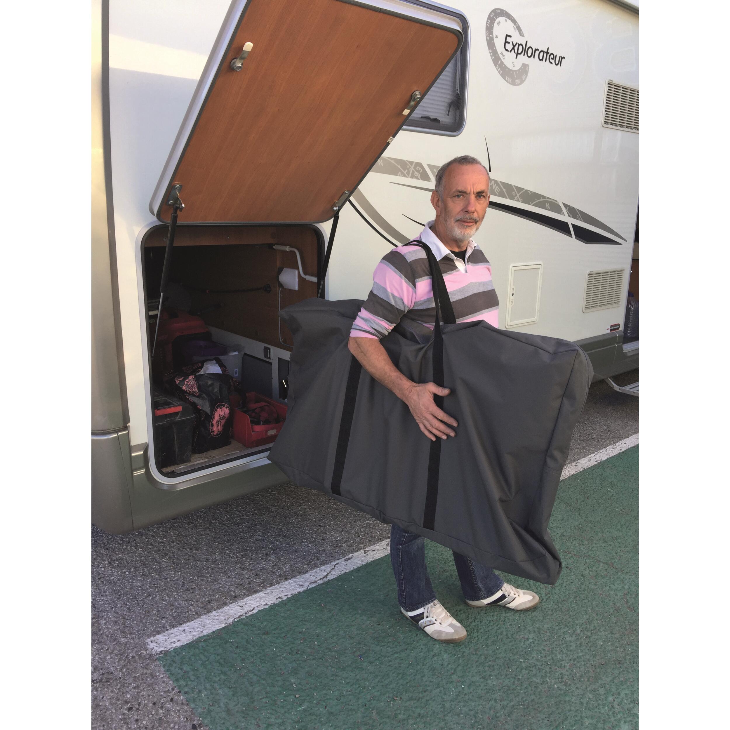 Le sac de rangement est idéal pour transporter et stocker vos fauteuils et repose-jambes. Il peut accueillir un à deux fauteuils, selon leur taille, ainsi qu'un repose-jambes.