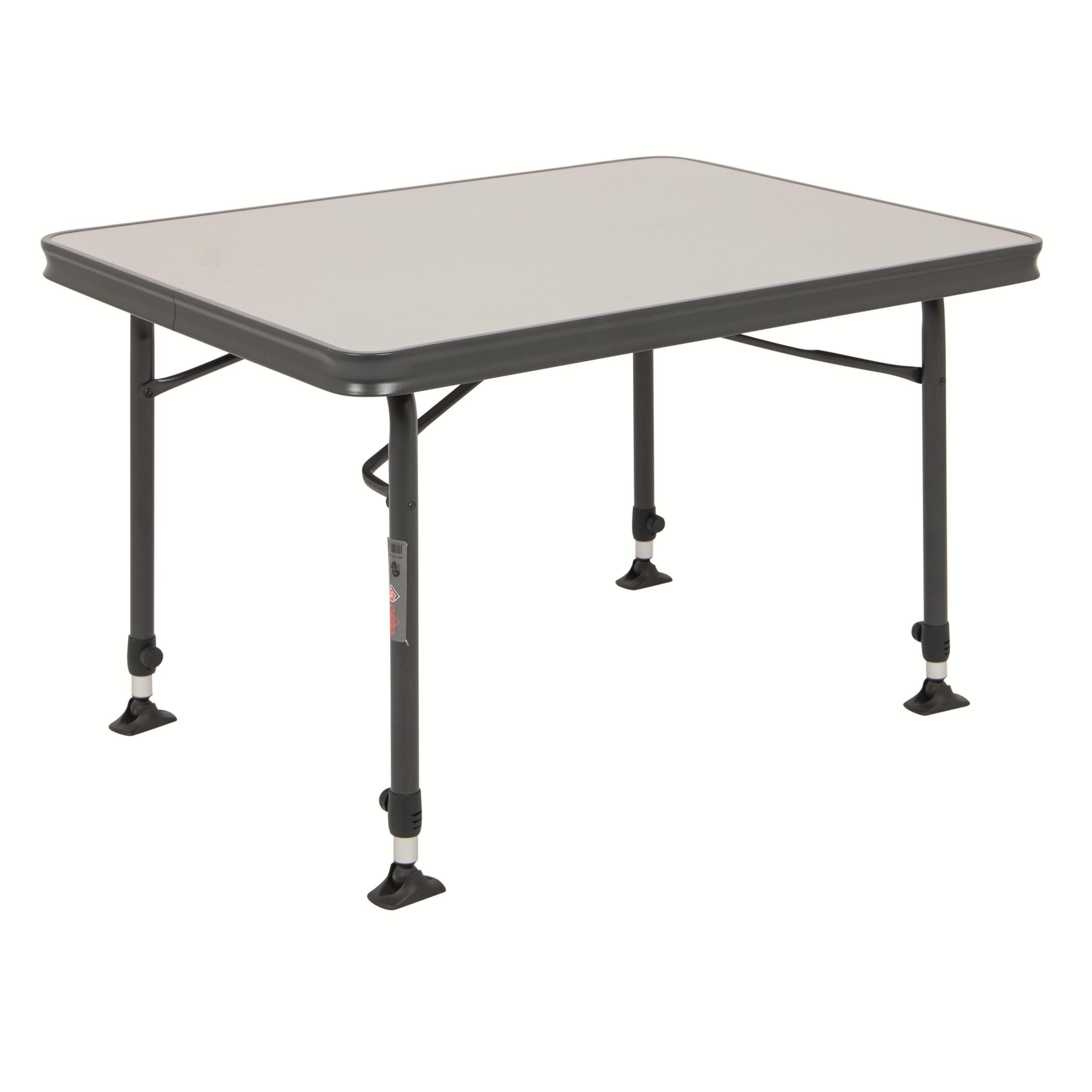 Table de camping rectangulaire grise Crespo : légère, stable et réglable, elle vous accompagne partout grâce à sa structure aluminium résistante et son format compact.
