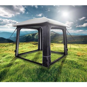 Un abri gonflable pratique et rapide à installerL'abri gonflable Lodge Air de Soplair est conçu pour offrir une installation facile et rapide. Grâce à son armature gonflable, cet abri peut être monté en seulement quelques minutes grâce à ses deux points de gonflage. Plus besoin de s'embarrasser de structures complexes, une simple pompe manuelle (incluse) suffit pour donner vie à votre espace de détente en plein air. Avec l'abri gonflable Lodge Air, votre seule limite sera votre imagination ! Libre à vous de l'installer sur un terrain de camping à côté de votre véhicule de loisirs, en pleine nature sur un spot inattendu relié à votre 4x4, votre van ou bien dans votre jardin pour abriter votre jacuzzi !Une construction robuste pour affronter les conditions météorologiques variablesFabriqué en polyester 300D, l'abri Lodge Air est conçu pour résister aux intempéries et offrir une durabilité exceptionnelle. Que ce soit sous la pluie, le vent ou le soleil, cet abri maintient sa robustesse et sa fonctionnalité. Le toit gris clair est spécialement conçu pour refléter le soleil, gardant ainsi l'intérieur de l'abri plus frais même lors des journées ensoleillées. De plus, chaque coin est équipé d'une sangle anti-vent pour assurer une stabilité maximale, même par temps venteux.Modulable pour s'adapter à tous vos besoinsL'un des grands atouts de l'abri Lodge Air est sa modularité. Vous pouvez l'utiliser seul de manière indépendante pour un espace supplémentaire ouvert, ou vous pouvez le personnaliser en ajoutant de nombreux accessoires en option pour répondre à vos envies et besoins. Par exemple, pour ceux qui souhaitent encore plus d'espace, il est possible d'ajouter des pièces annexes telles qu'une chambre supplémentaire ou une cuisine, ou même de connecter deux abris ensemble à l'aide du connecteur en option. Des tunnels de raccordement ont également été créés pour relier l'abri directement à votre véhicule. Cette flexibilité vous permet de créer un espace sur mesure qui, grâce à la forme originale de son toit, ressemblera à une vraie petite maison !Accessoires inclus pour un usage optimalL'abri Lodge Air est livré avec tout le nécessaire pour une utilisation immédiate et optimale. En plus de la pompe manuelle, des piquets et des élastiques sont inclus pour assurer une fixation sécurisée. Un sac de rangement pratique facilite le transport et le stockage. De plus, un crochet à l'intérieur du toit permet de suspendre une petite lampe de camping, rendant votre abri encore plus fonctionnel et confortable.