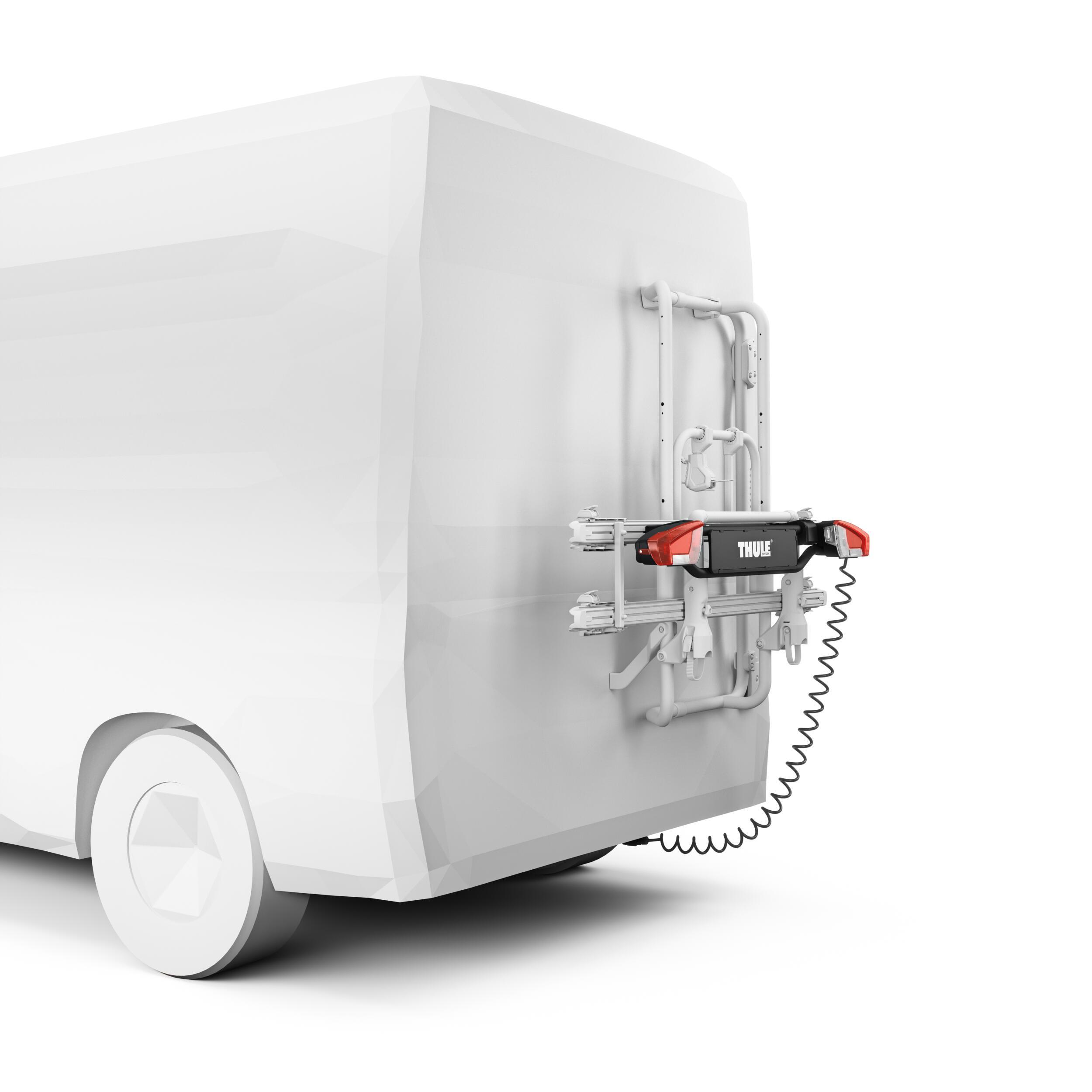 Compatible avec les porte-vélos Thule VeloTrack et Thule Elite Van XT, il est conçu spécifiquement pour les fourgons aménagés et les vans. Il épouse les lignes du véhicule et de l’équipement, sans gêner l’accès arrière ni nuire à l’esthétique générale. L’installation est simple, rapide et intuitive, avec des connexions adaptées à la plupart des systèmes de faisceaux de remorque.