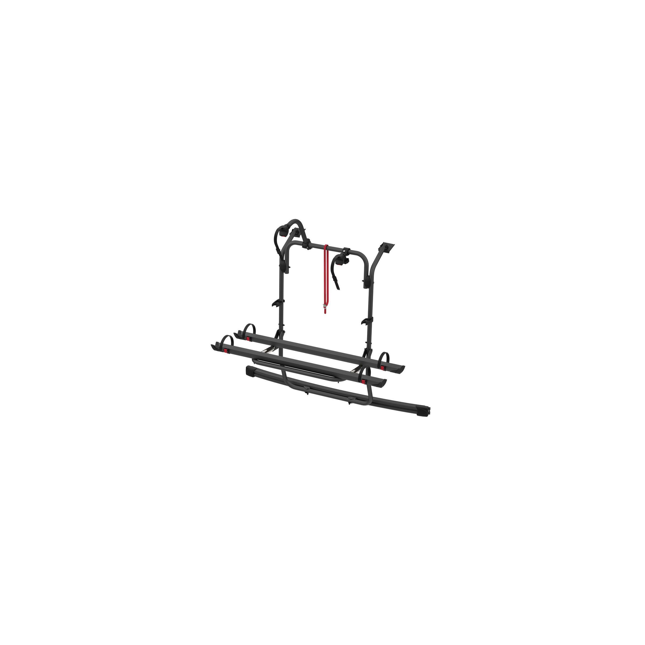 Le Carry-Bike permet de transporter 2 vélos (ou plus selon les modèles) avec un maintien optimal. Les vélos sont fixés à l’aide de rails en aluminium solides, de bras de maintien réglables et d’une sangle de sécurité Fiamma Security Strip fournie de série, pour une parfaite tenue sur route, même en cas de freinage brusque ou de virage serré.