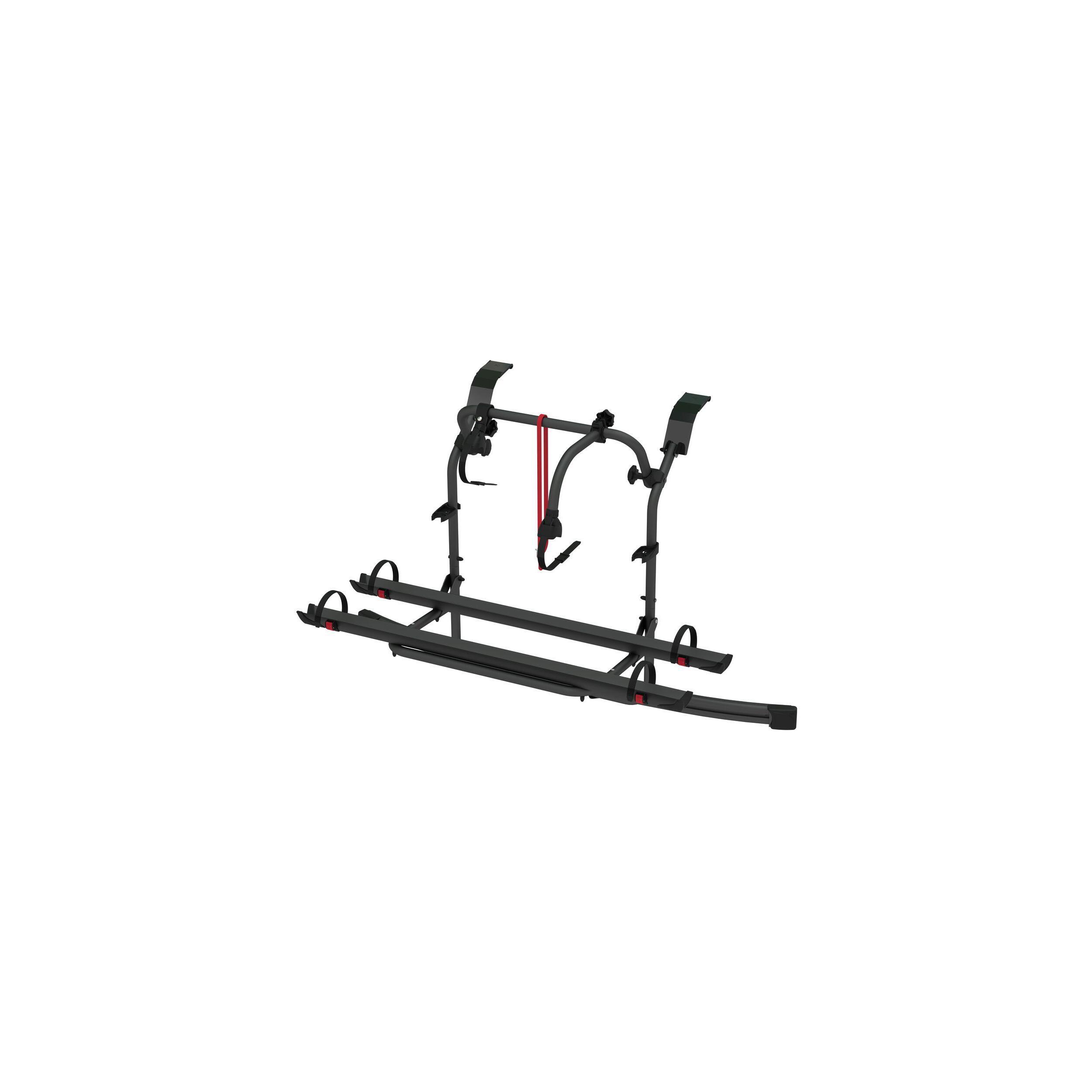 Le Carry-Bike permet de transporter 2 vélos (ou plus selon les modèles) avec un maintien optimal. Les vélos sont fixés à l’aide de rails en aluminium solides, de bras de maintien réglables et d’une sangle de sécurité Fiamma Security Strip fournie de série, pour une parfaite tenue sur route, même en cas de freinage brusque ou de virage serré.