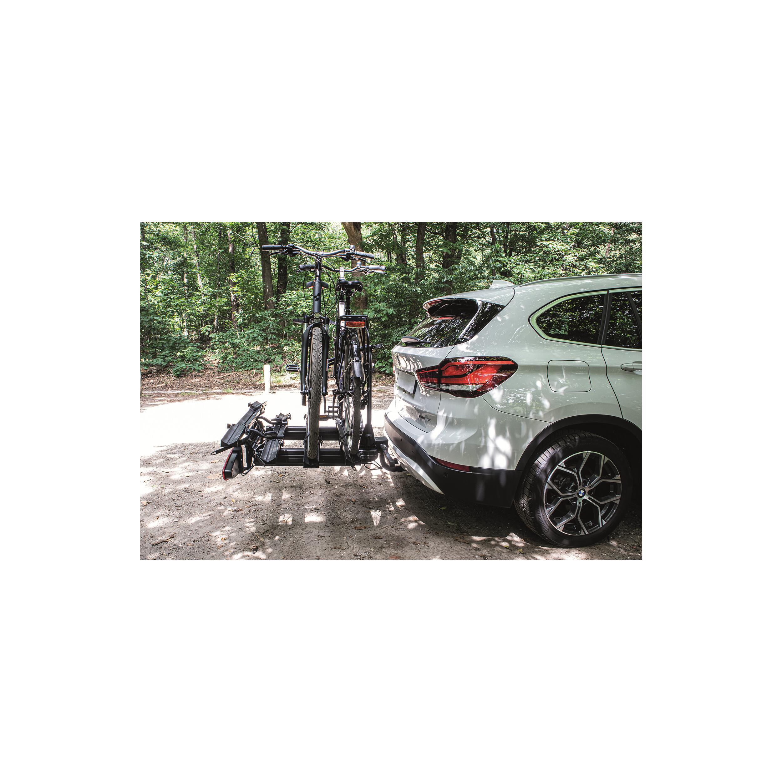 Ce porte-vélos peut transporter trois vélos standard et offre la possibilité d'ajouter un quatrième grâce au rail XB1. Avec une capacité maximale de charge de 60Kg, il est équipé de bras de fixation ajustables et verrouillables, assurant la sécurité de vos vélos avec un système de clés propriétaires.