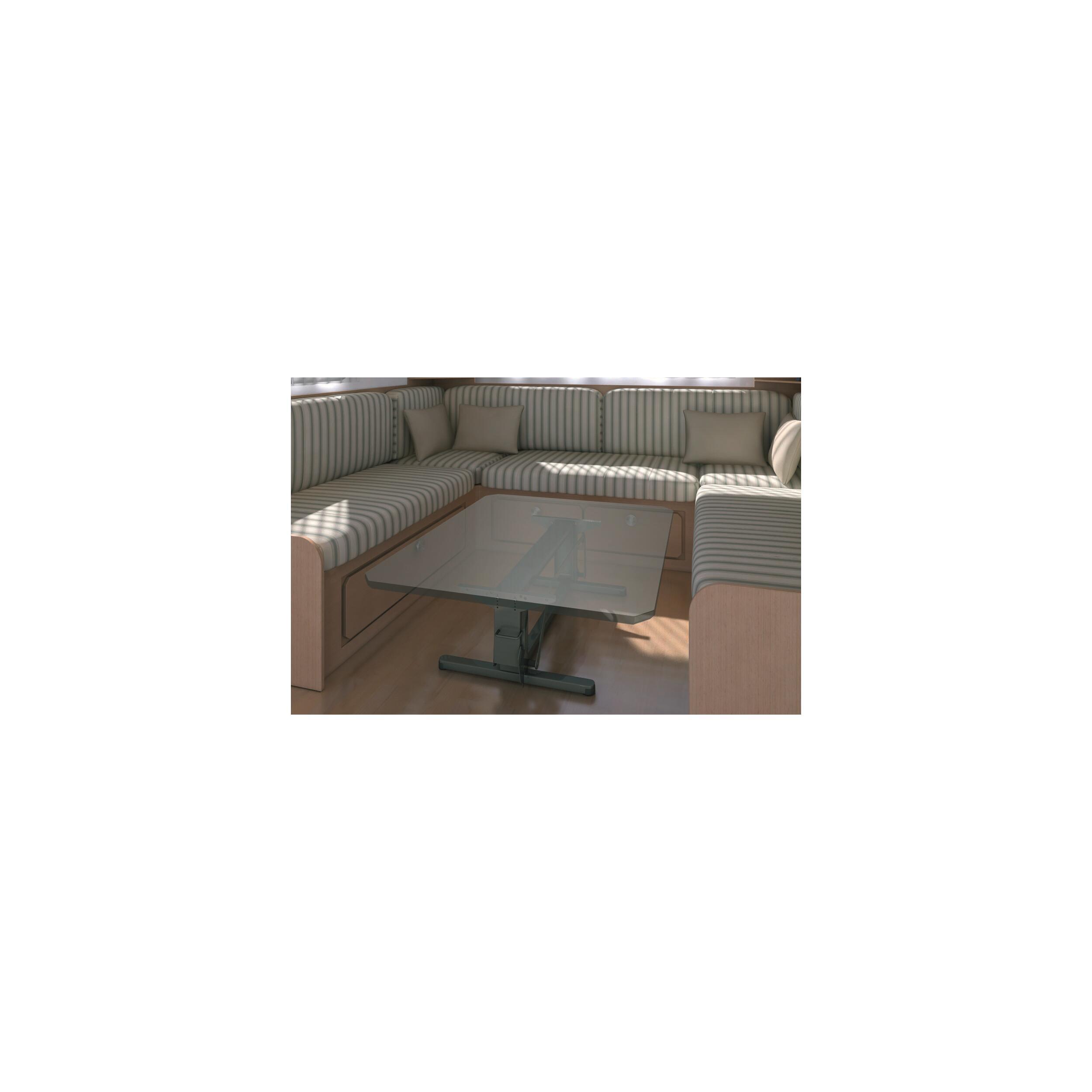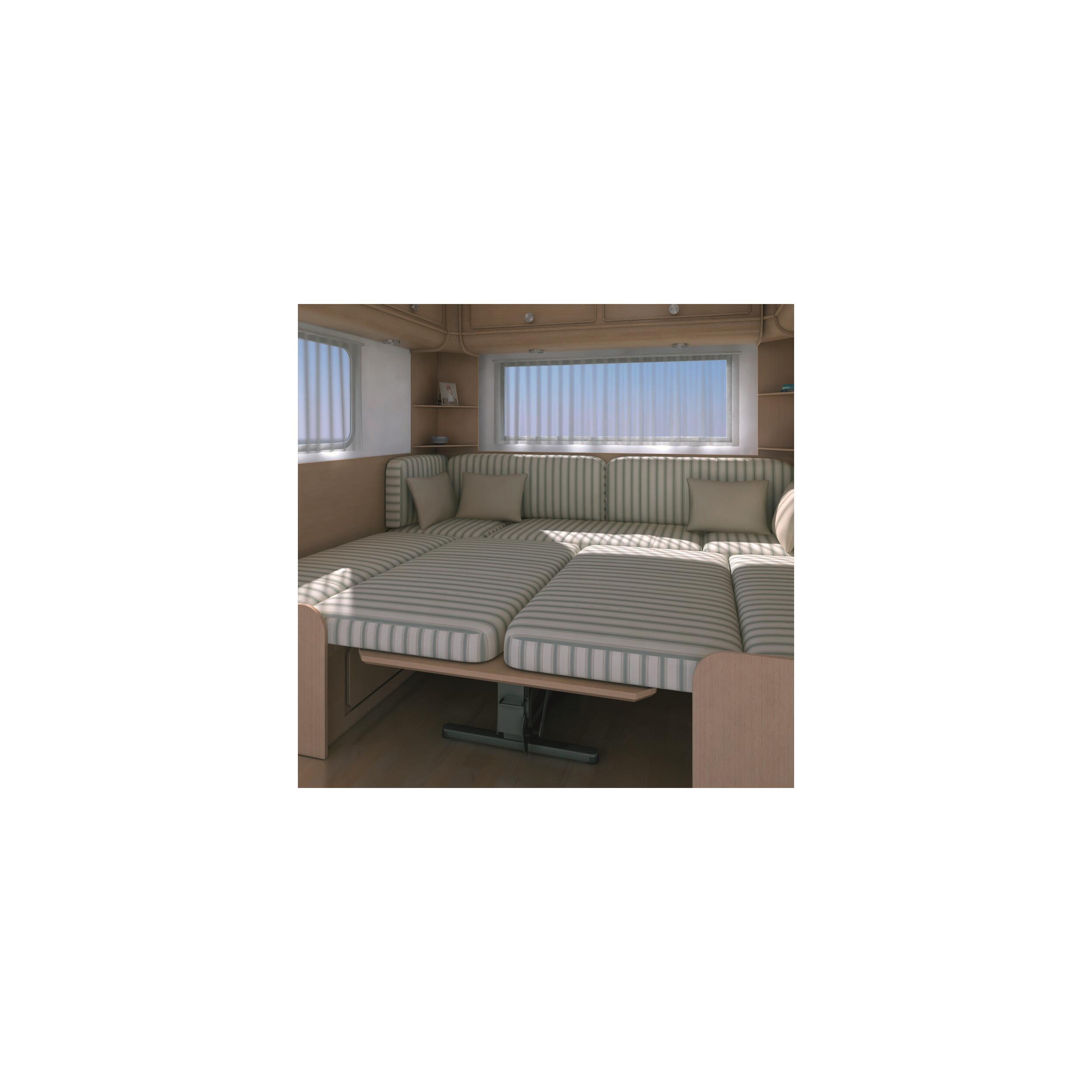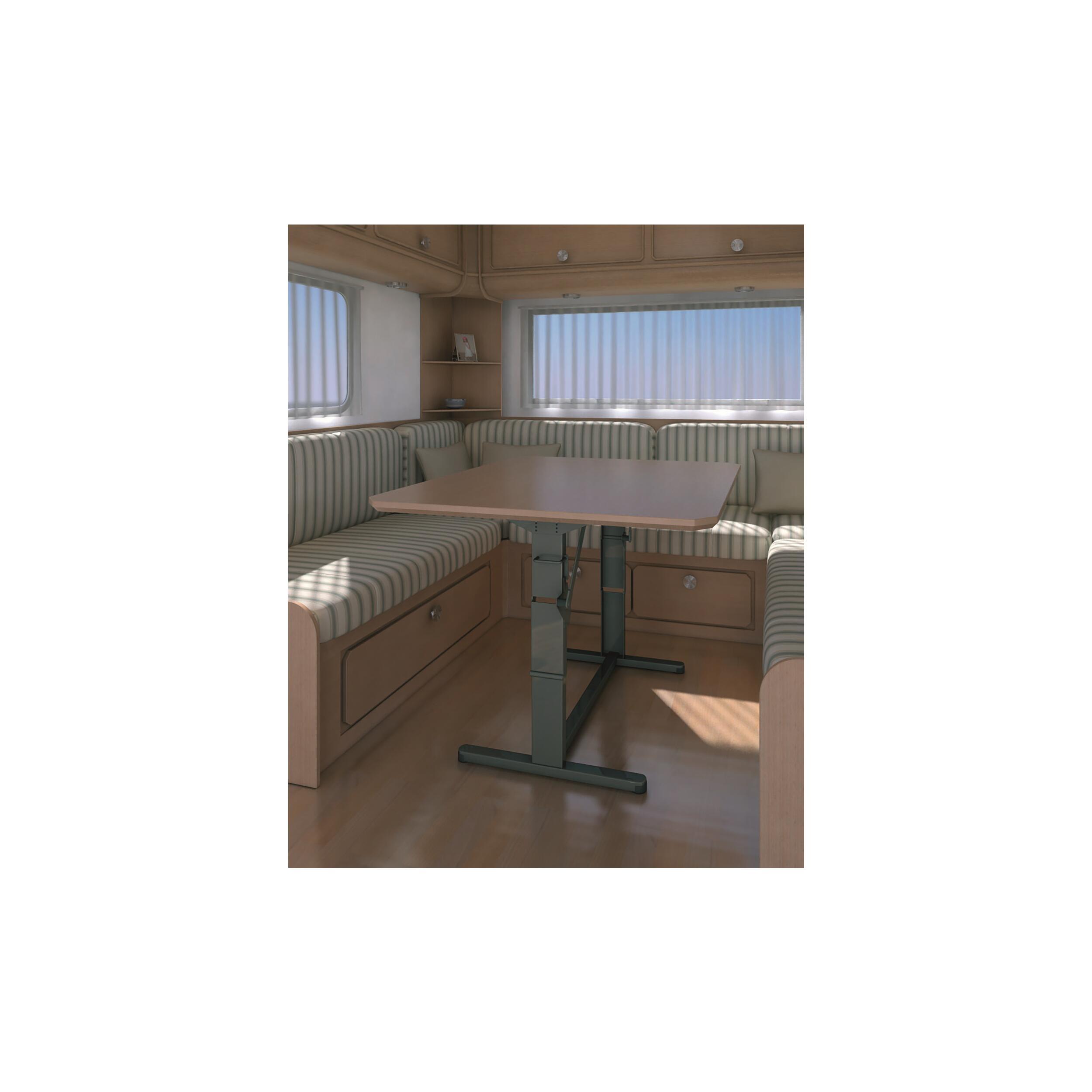 Hauteur réglable de : 655 à 705 mm en position haute, 295 à 345 mm en position basse. Encombrement au sol : 585 x 600 mm.