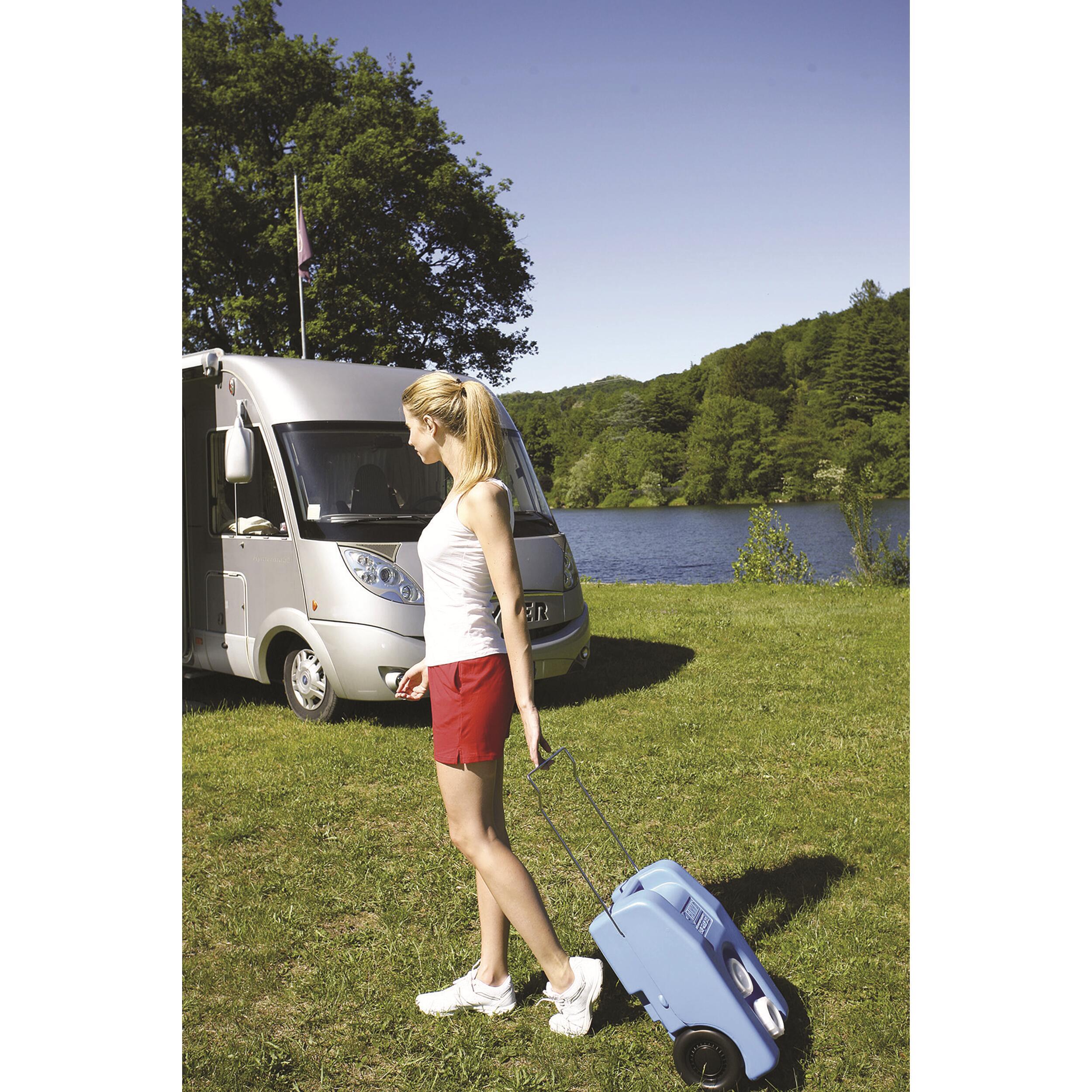 Réservoirs portables à roulettes de 23 litres compacts pouvant se loger facilement partout. Avec bouchon de vidange facilitant l'entretien et poignée escamotable.