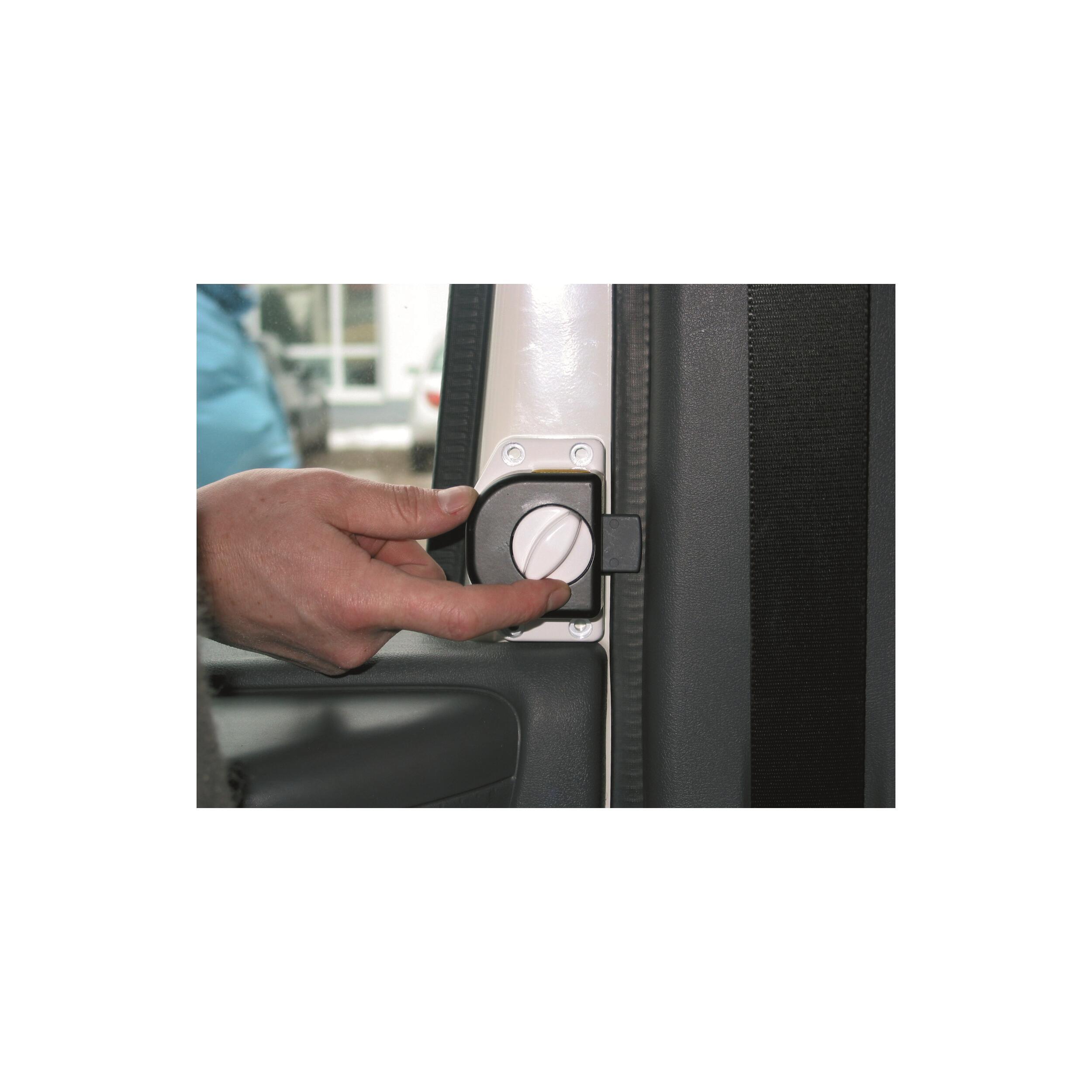 Idéal pendant les stationnements. Système sûr et efficace permettant de bloquer les deux portes avant de votre cabine. Simple à installer, chaque modèle s'intègre parfaitement à votre véhicule. Existe en 2 versions : verrouillage manuel ou à clé. Par lot de 2.
