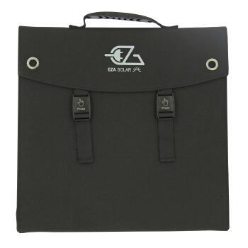 Panneau Solaire Pliant EZA : une source d’énergie mobile et efficace pour vos aventuresUne production solaire optimale grâce aux cellules monocristallinesLe panneau solaire pliant EZA est conçu pour les amateurs de voyages en autonomie. Grâce à ses cellules monocristallines haute performance, il atteint un rendement de 20%, garantissant une puissance jusqu’à 100W pour recharger vos appareils électroniques et batteries auxiliaires. Son design compact et léger en fait un allié incontournable pour le camping, les road trips en van ou encore les activités de plein air.Un panneau solaire ultra-pratique et polyvalentFacile à installer et à utiliser, ce panneau peut être posé au sol ou fixé grâce à ses œillets intégrés, permettant une meilleure orientation vers le soleil. Son inclinaison ajustable optimise son efficacité tout au long de la journée, même dans des conditions d’ensoleillement variables. Sa sacoche en polyester 1200D le protège lors du transport et permet un rangement facile dans les espaces restreints des vans, fourgons et petits véhicules de loisirs.Une compatibilité étendue pour recharger facilement vos équipementsLe panneau solaire EZA est conçu pour alimenter une powerstation ou une batterie auxiliaire via un régulateur solaire (optionnel). Grâce à sa connectique DC avec un câble de 1,5 m et prise jack mâle DC55215, il est simple à brancher et prêt à l’emploi pour vos besoins énergétiques en mobilité. Que ce soit pour charger vos appareils électroniques, alimenter un frigo portable ou maintenir une batterie en état, il offre une solution énergétique fiable et autonome.Un équipement robuste et fiable pour vos sorties outdoorSa construction robuste avec un cadre en plastique résistant et une finition en polyester 1200D garantit une longue durée de vie, même en conditions extérieures exigeantes. Pensé pour les aventuriers, ce panneau est un compagnon idéal pour vos week-ends prolongés et sorties en pleine nature.