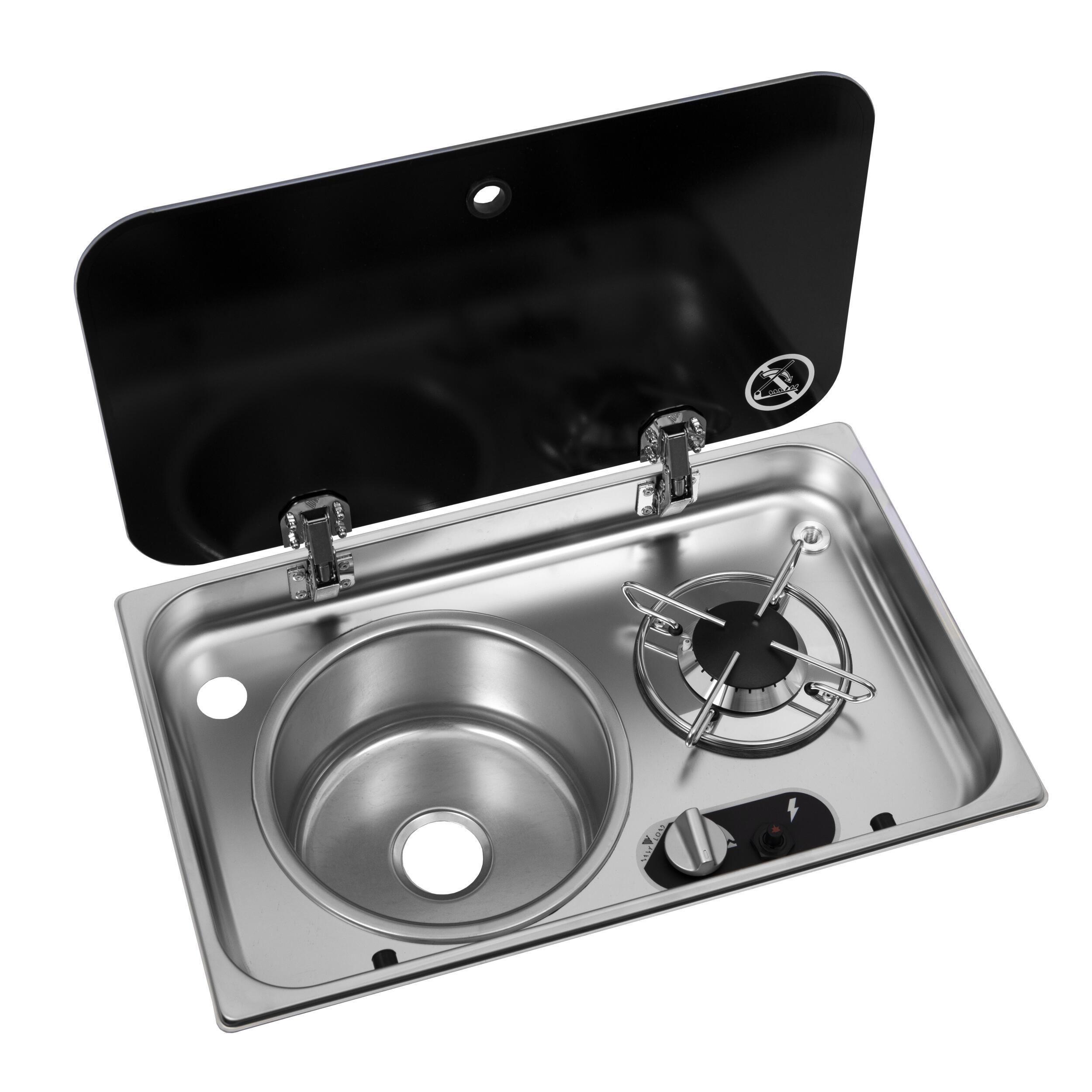 Découvrez notre réchaud à gaz encastrable 1 feu avec évier et couvercle en verre T-Safe, alliant puissance, sécurité et design en acier inoxydable.