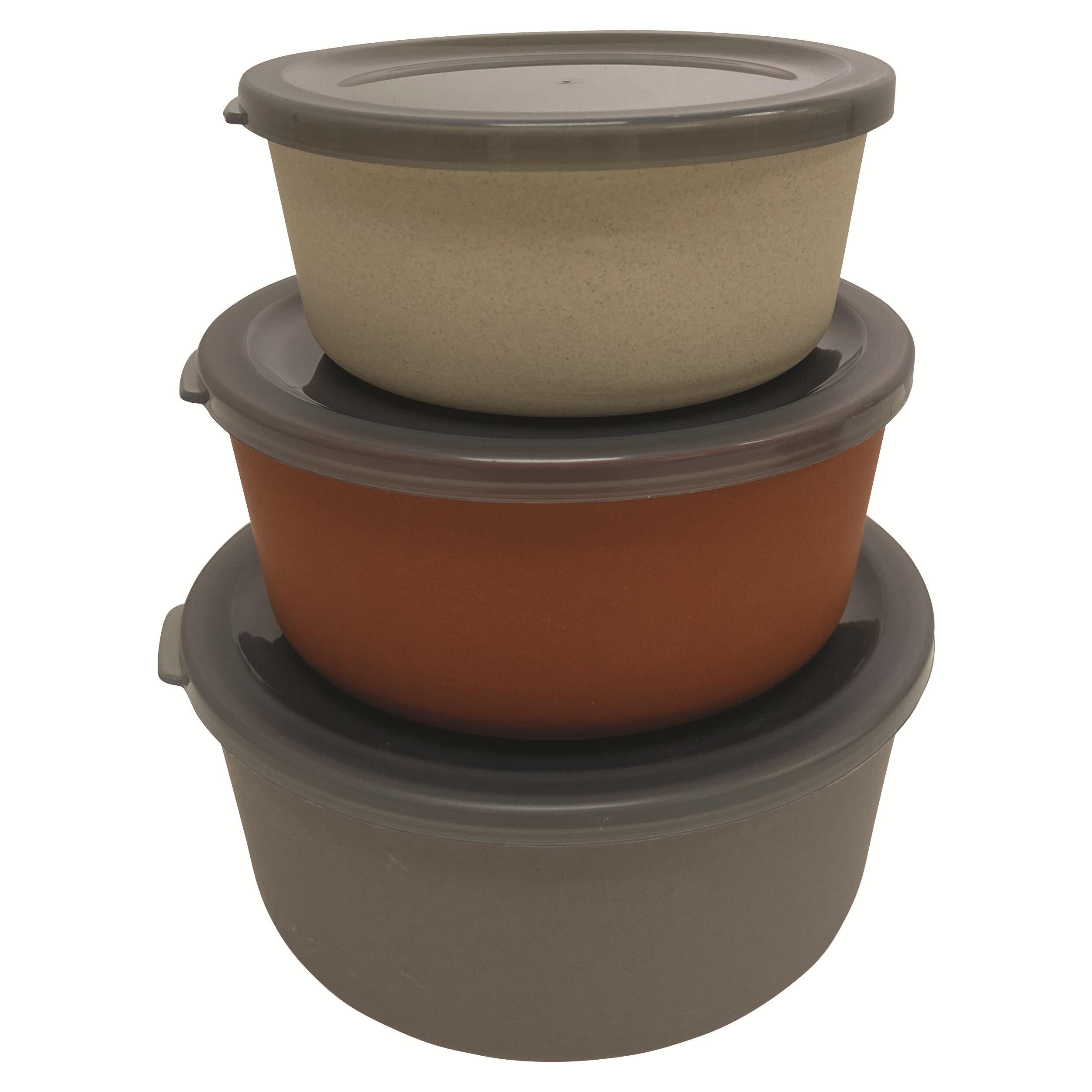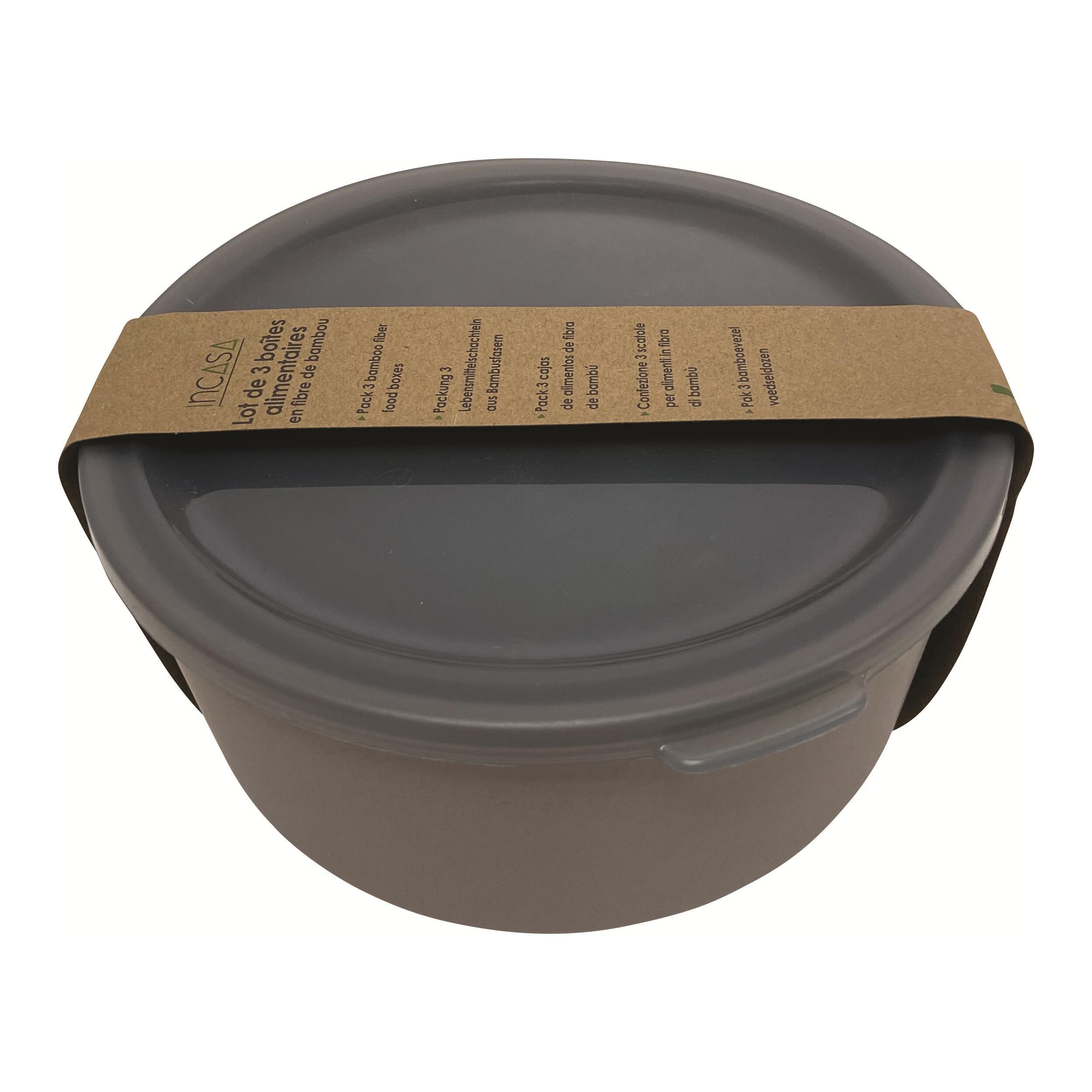 Lot de 3 boîtes alimentaires en fibre de bambou équipées d'un couvercle en silicone gris.