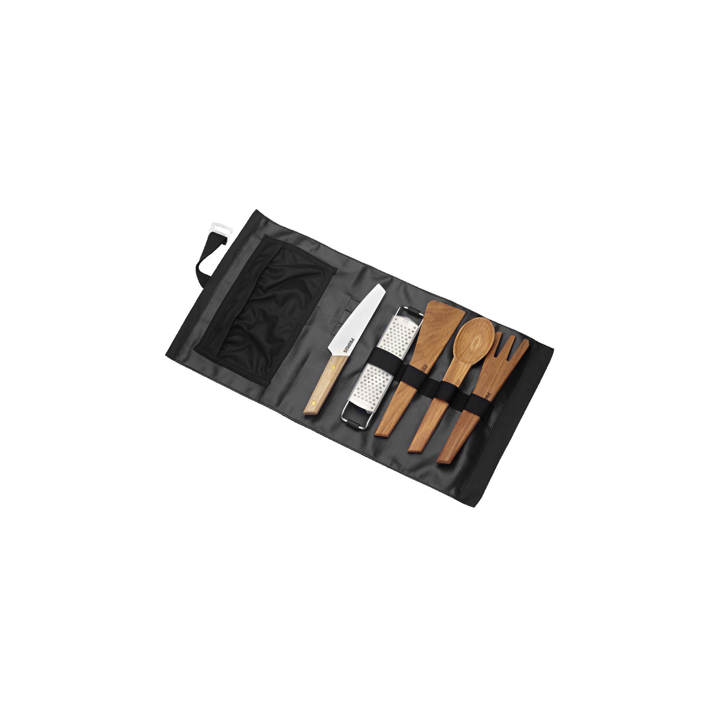 La cuisine sera un jeu d'enfant lors de vos aventures en randonnée ou camping. Grâce à ce set CampFire Prep proposé par Primus, vous disposerez d'un set d'ustensiles pratique et ordonné pour la préparation de votre repas. Cet ensemble est doté d'une pochette pour y intégrer des accessoires supplémentaires, d'un couteau, d'une spatule plate, d'une spatule à dent, d'une râpe, et d'une cuillère en bois.