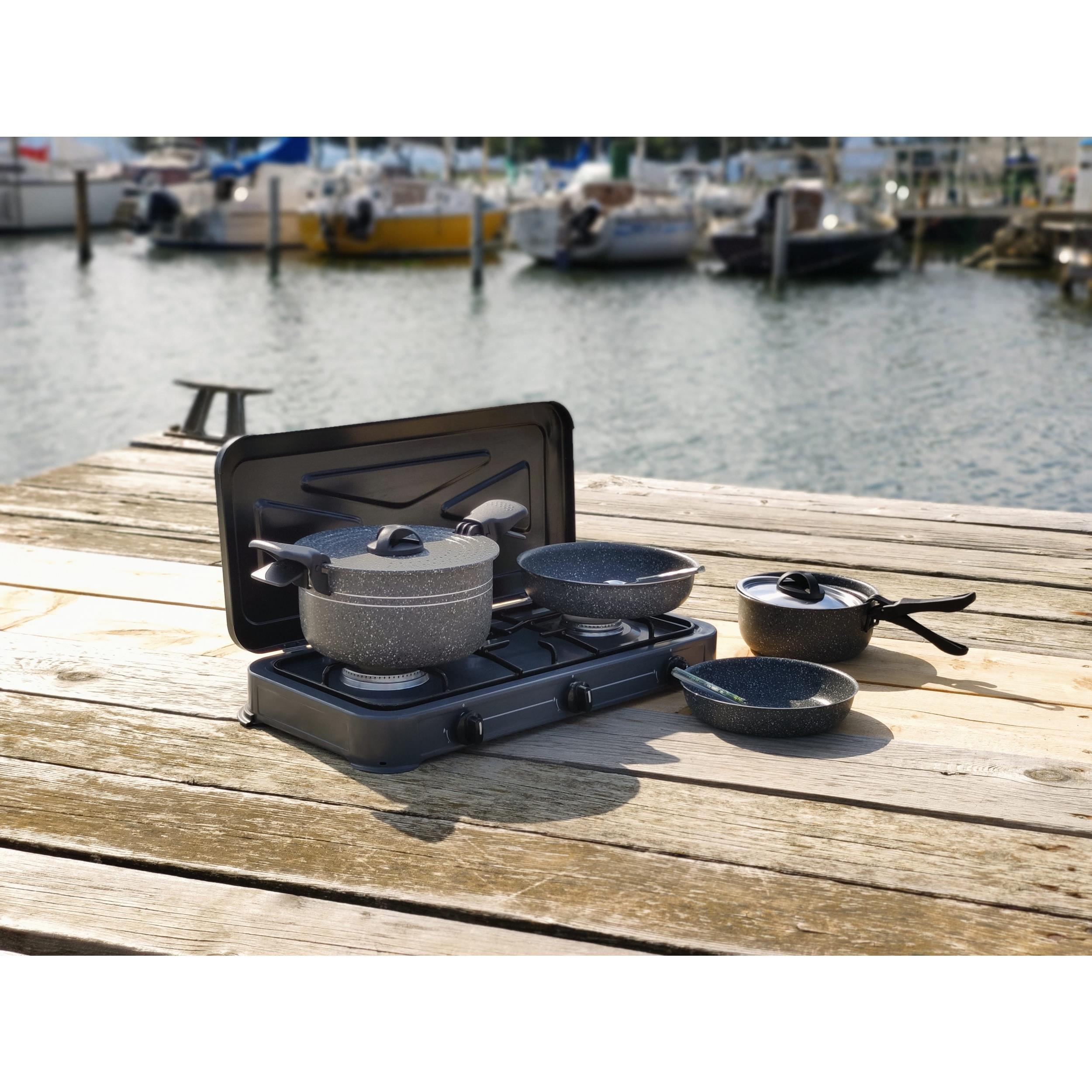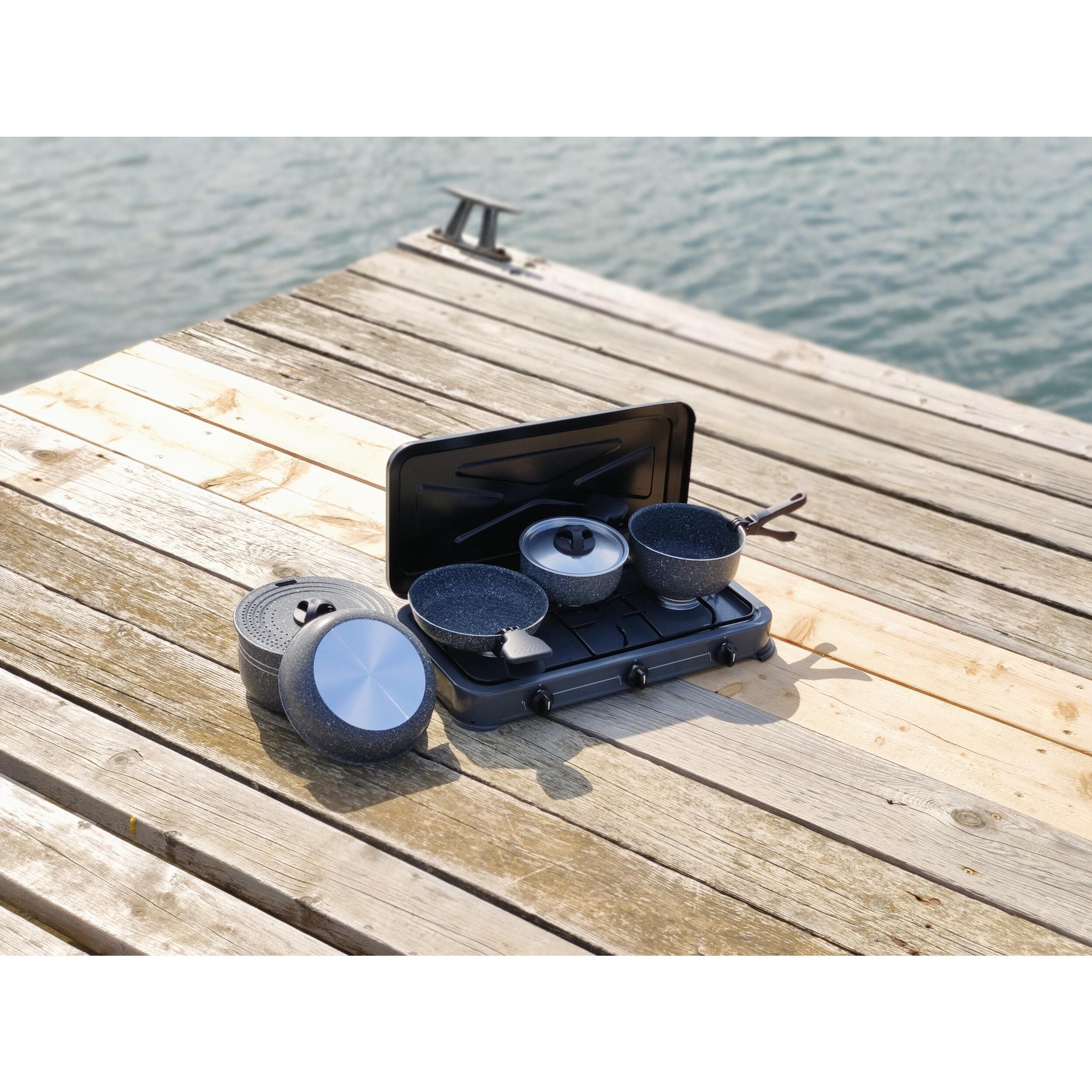 Légère, compacte et innovante, cette popote regroupe toutes les caractéristiques idéales à la vie en camping, camping-car, caravane, bâteau... Elle prend peu de place dans vos placards puisque toutes les pièces s'emboîtent pour ne former qu'un seul élément compact, bien calé et protégé dans sa housse.