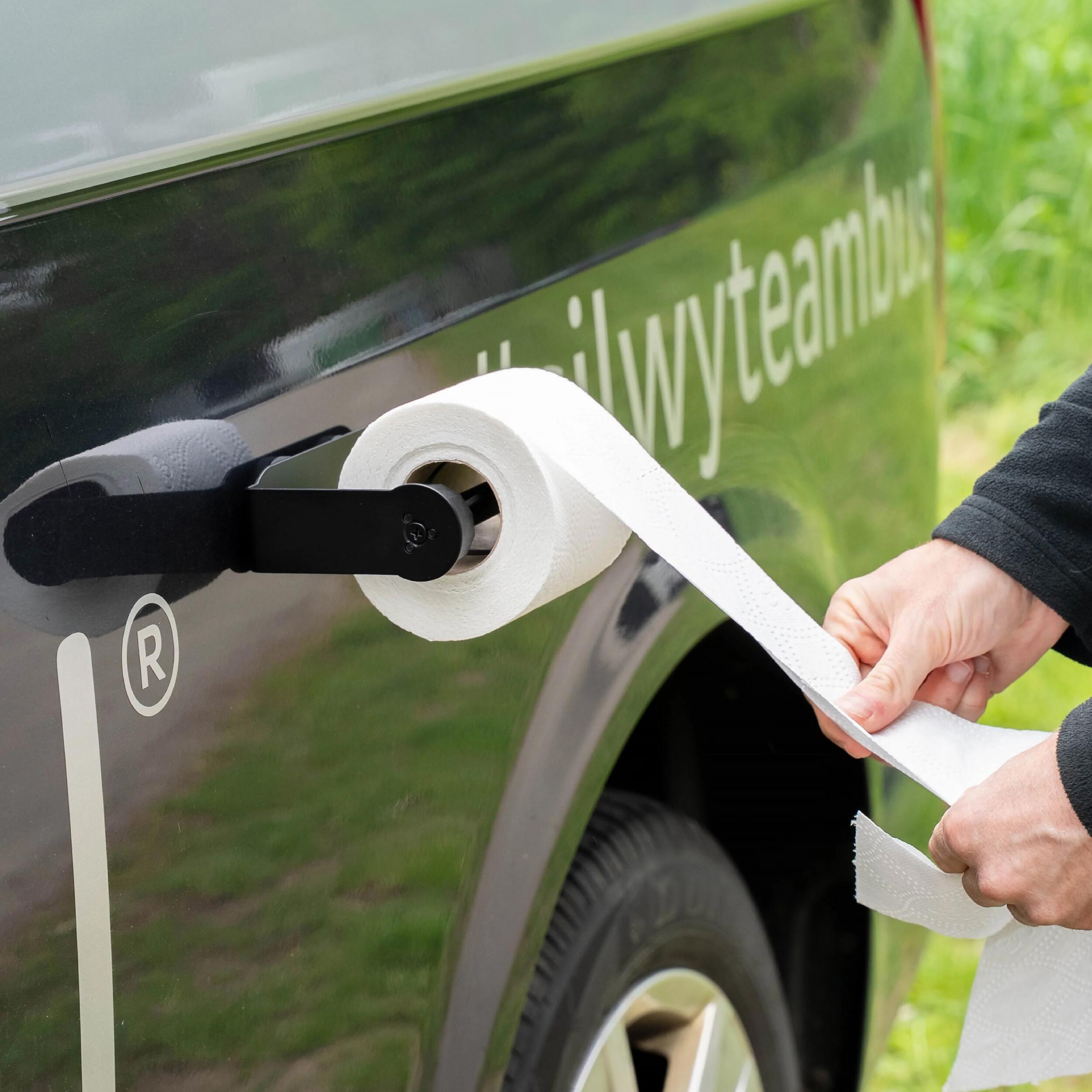 Le porte-rouleau magnétique Silwy peut être utilisé à l’intérieur comme à l’extérieur du véhicule, et convient parfaitement pour les toilettes de camping ou les sanitaires de fourgon aménagé.