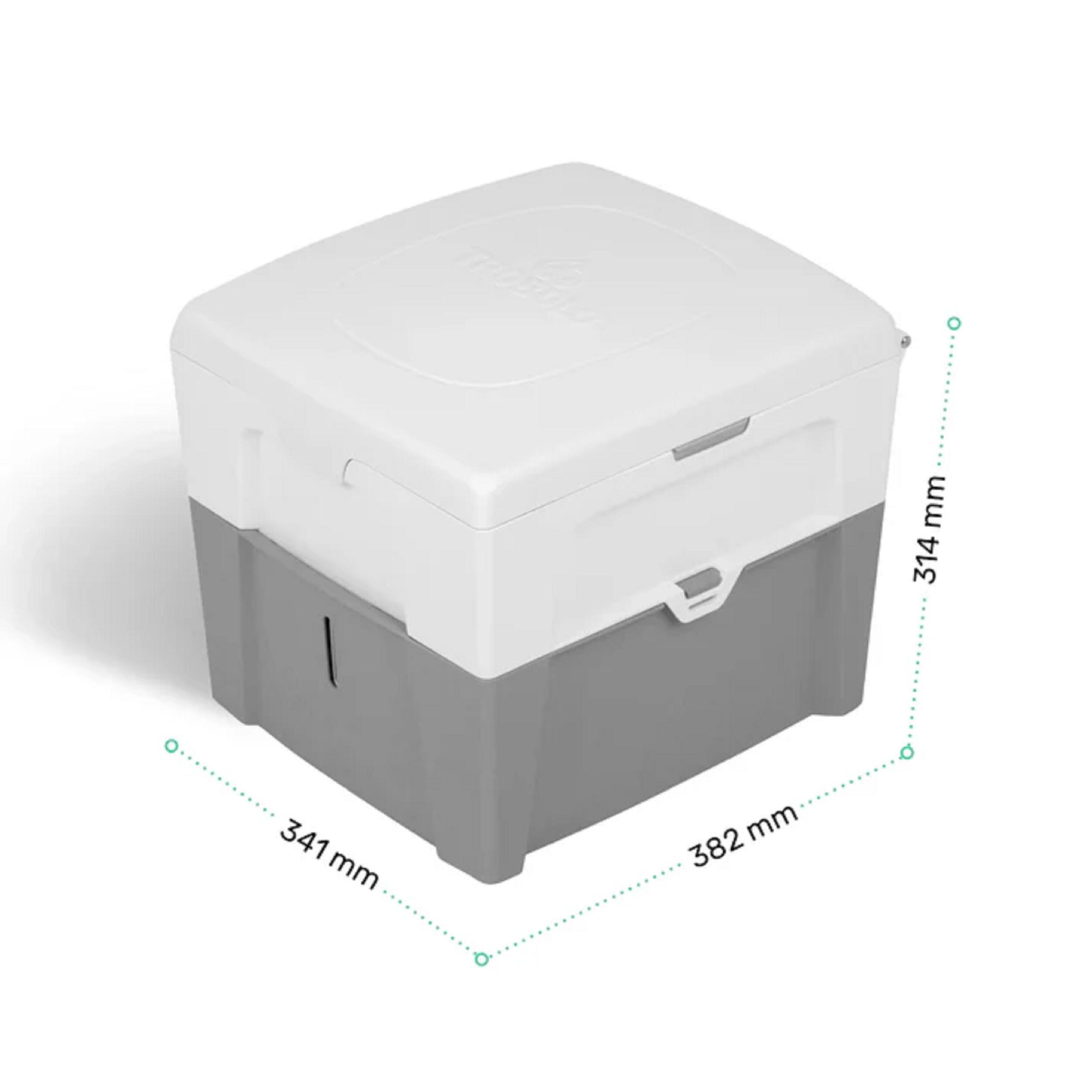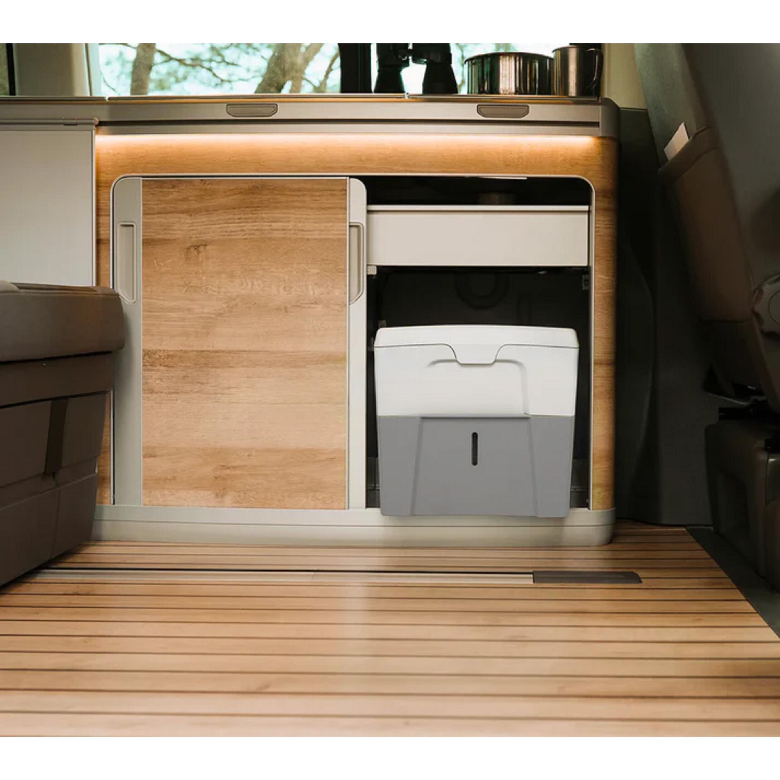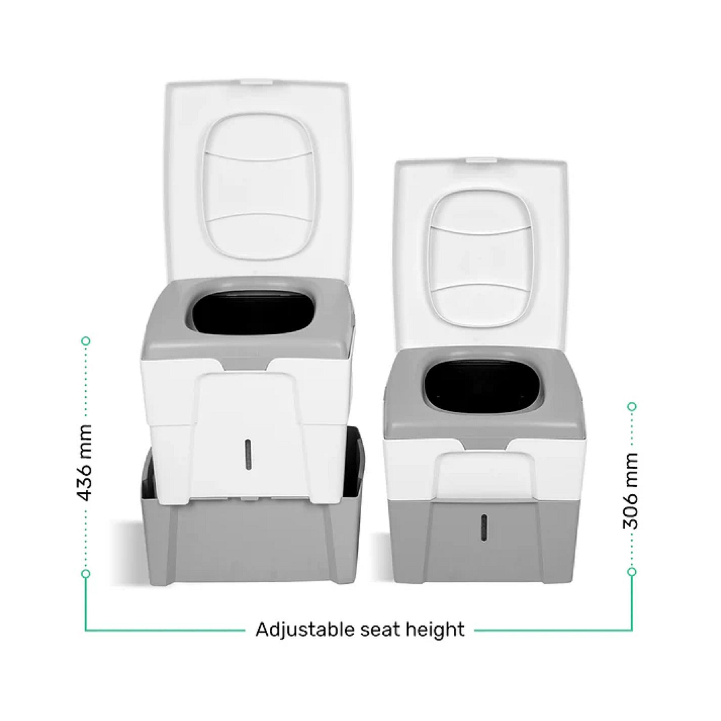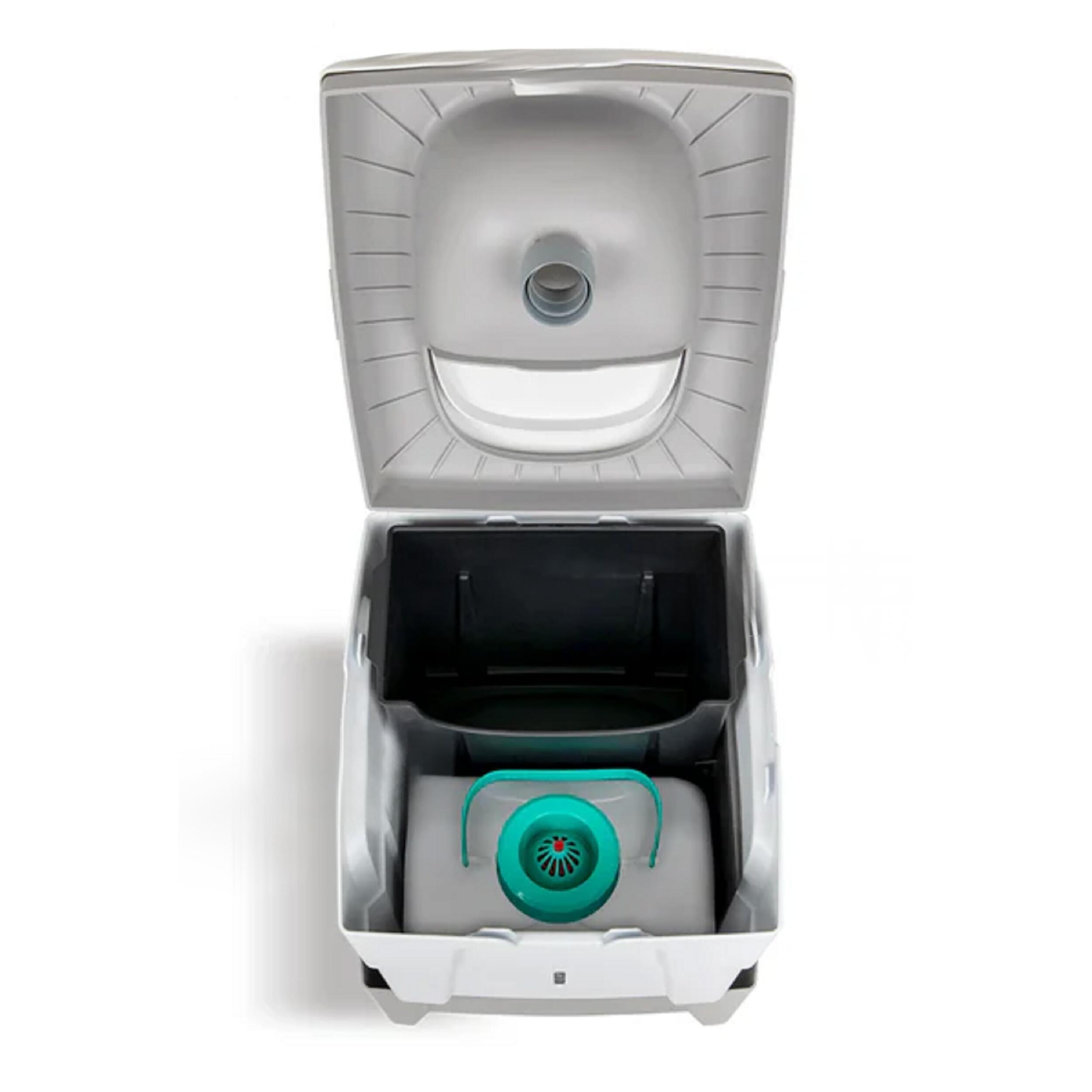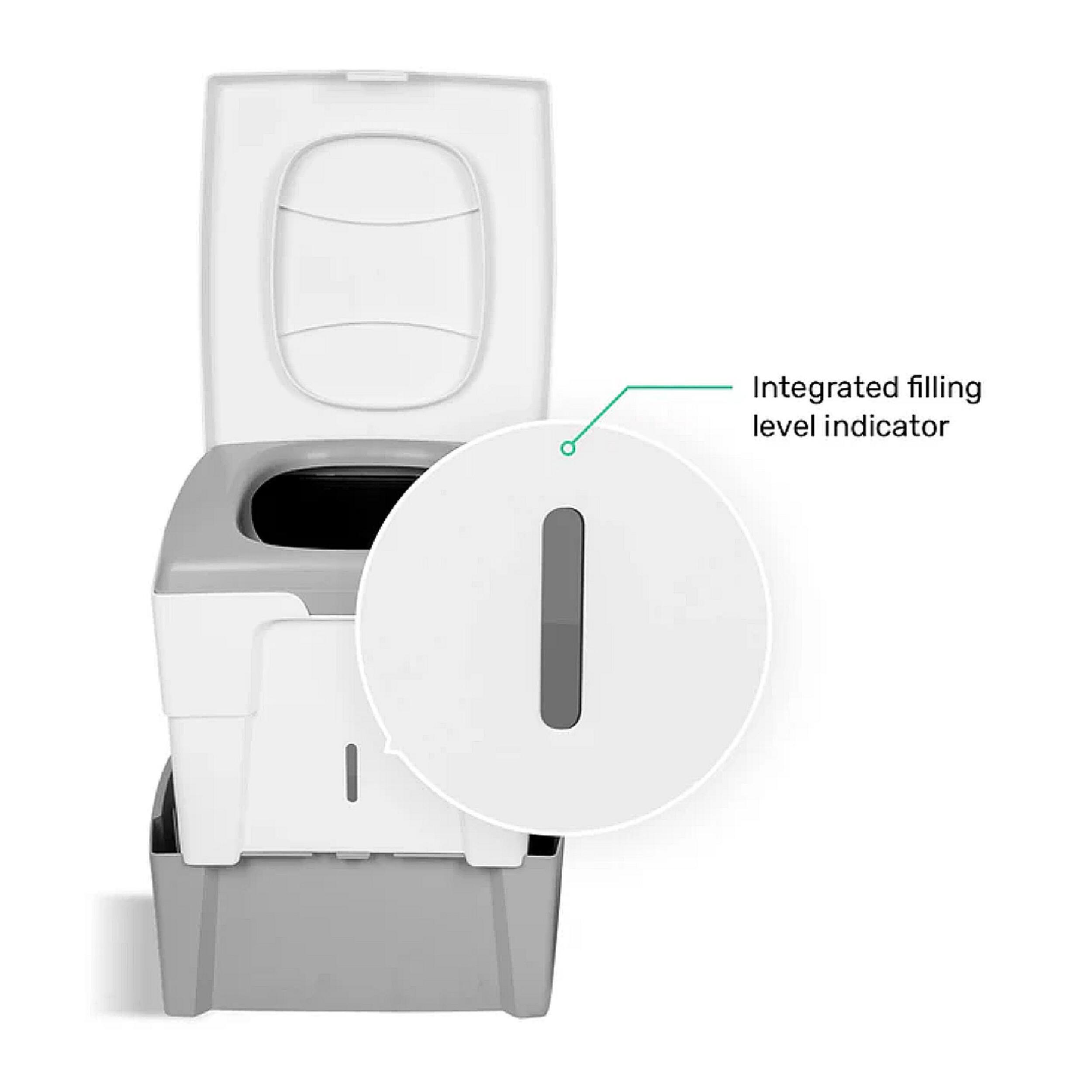 Les deux versions se rangent facilement grâce à leurs dimensions compactes. Le poids varie selon le modèle, de 3,3 à 4,2 kg. Le transport est facilité par la conception robuste et la fermeture étanche du couvercle. Les récipients se retirent séparément pour une vidange rapide. Les matières solides peuvent être jetées avec les déchets ménagers et les liquides éliminés dans des toilettes classiques ou dilués pour d’autres usages. Le nettoyage se fait simplement grâce au polypropylène résistant.
