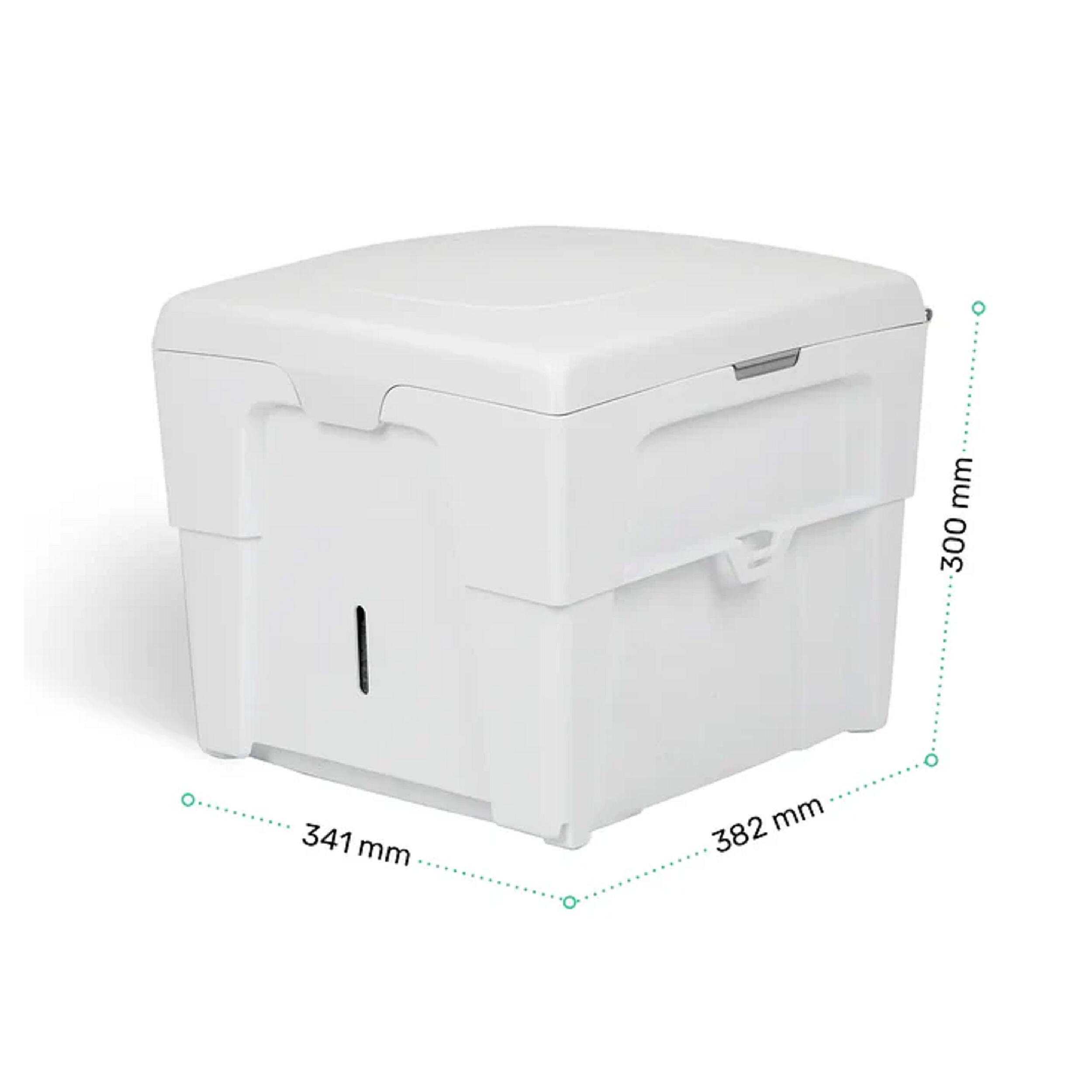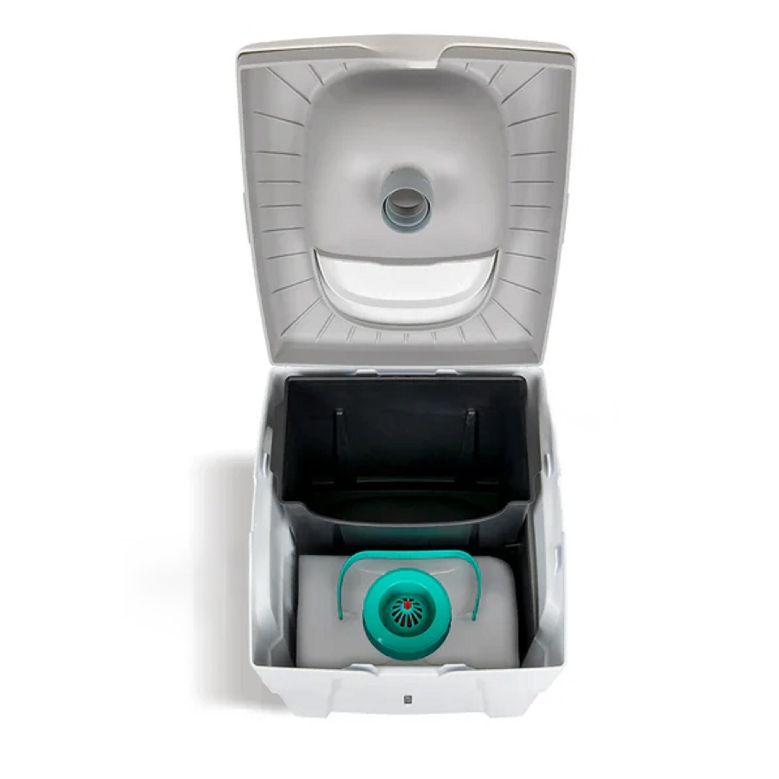 Les deux versions se rangent facilement grâce à leurs dimensions compactes. Le poids varie selon le modèle, de 3,3 à 4,2 kg. Le transport est facilité par la conception robuste et la fermeture étanche du couvercle. Les récipients se retirent séparément pour une vidange rapide. Les matières solides peuvent être jetées avec les déchets ménagers et les liquides éliminés dans des toilettes classiques ou dilués pour d’autres usages. Le nettoyage se fait simplement grâce au polypropylène résistant.